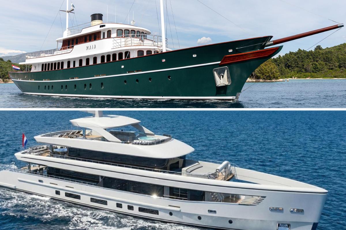 Imagine a perfect morning on the Adriatic. On one side, you have the MAIA, her deep emerald green hull and classic wooden accents whispering stories of a more romantic, timeless era of yachting. On the other, the ORIY cuts a striking figure against the horizon - a white, futuristic masterpiece of sharp lines and glass.