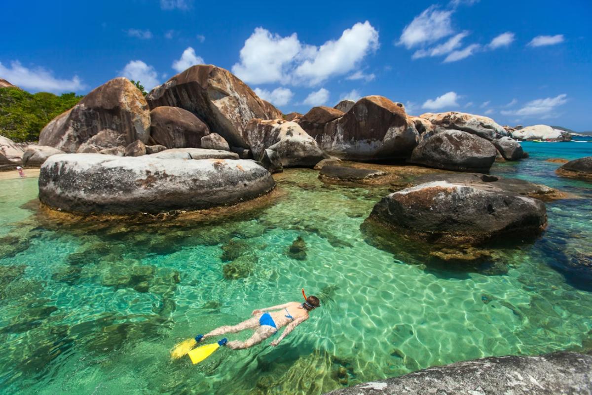 - Virgin Gorda: One of the most visited islands in the region. Its most famous attraction is The Baths, where giant granite boulders form natural pools and sea caves along the shoreline. The area is a popular stop for swimming, snorkeling, and exploring the unique rock formations.