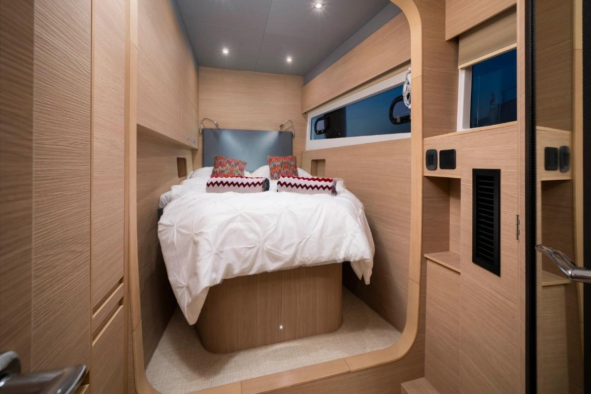 - Accommodation for 8 Guests: This brand-new 16.5m Aquila catamaran (2024) features four spacious double cabins, including a master with king-size bed and three queen cabins, all designed for maximum comfort and privacy.