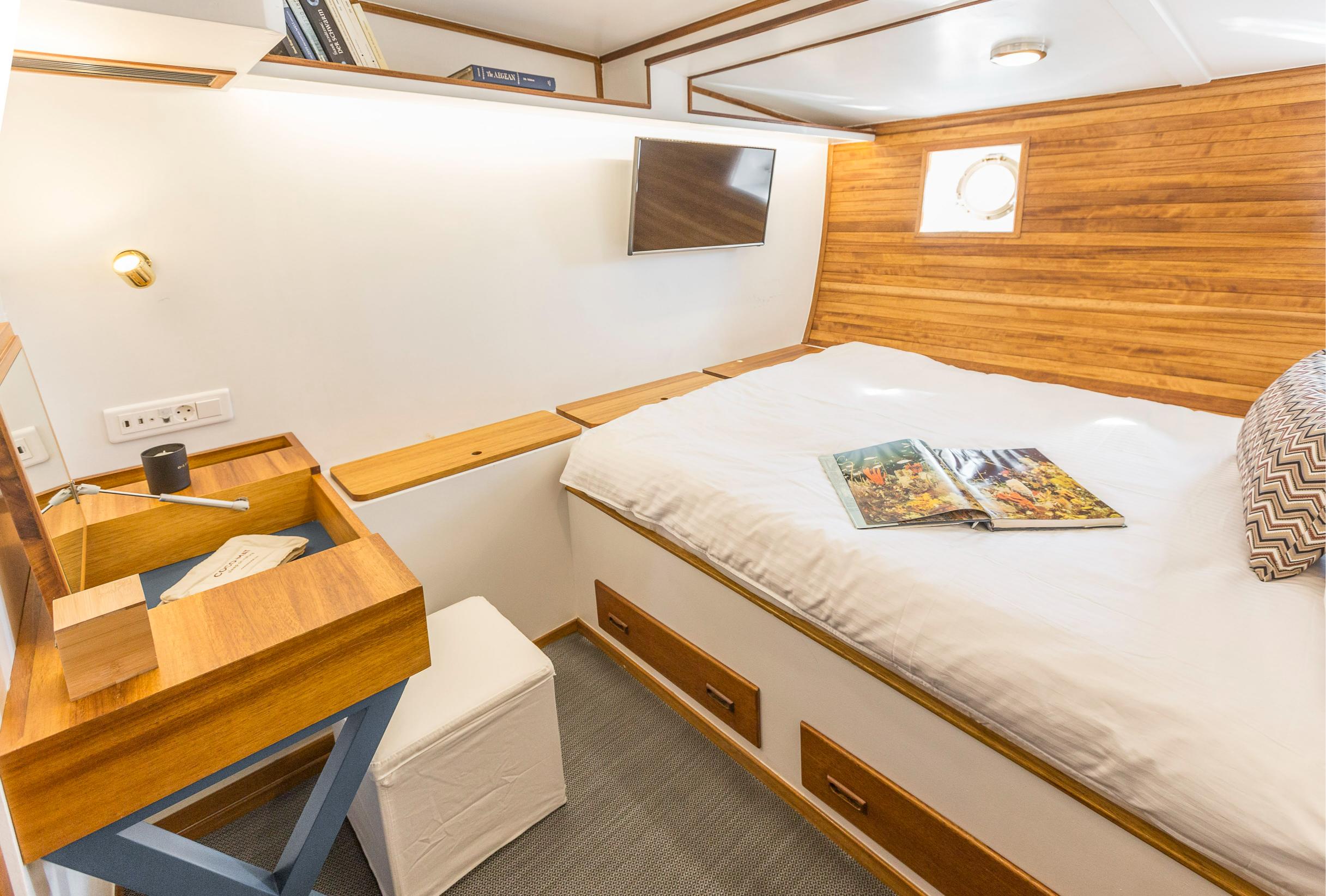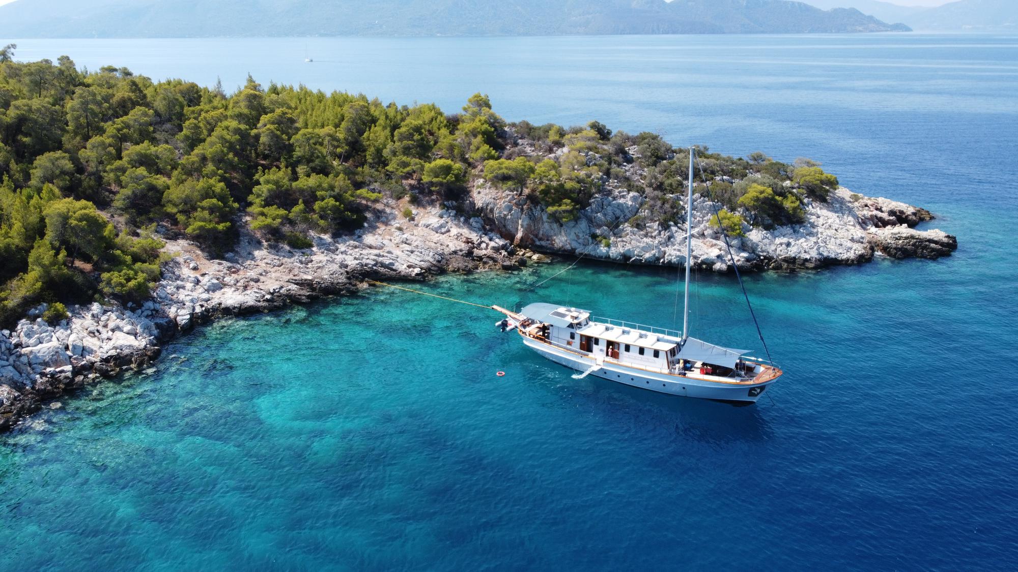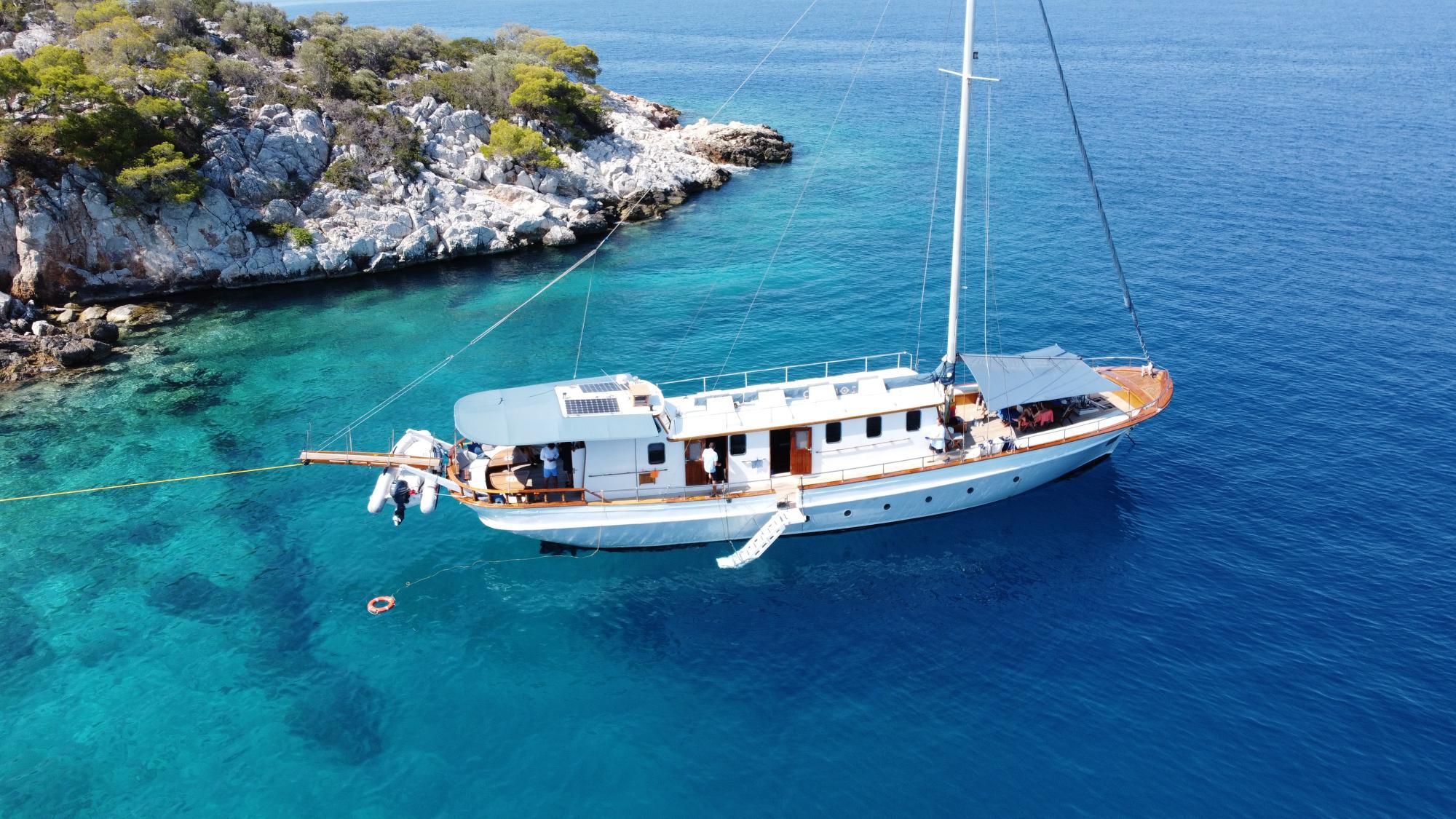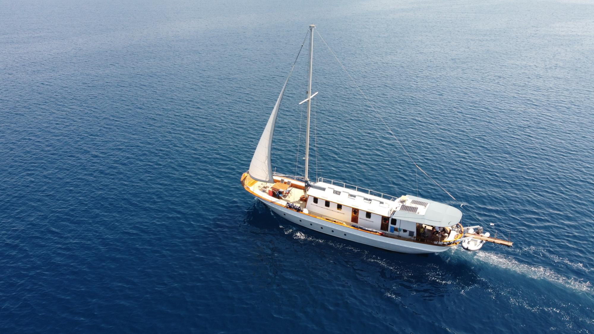 A masterpiece of traditional craftsmanship with a graceful elliptical stern, COSMOS combines classic wooden yacht charm with modern luxury. Designed to host up to 8 guests in four beautifully appointed cabins, she offers serenity, comfort, and understated opulence for unforgettable voyages.