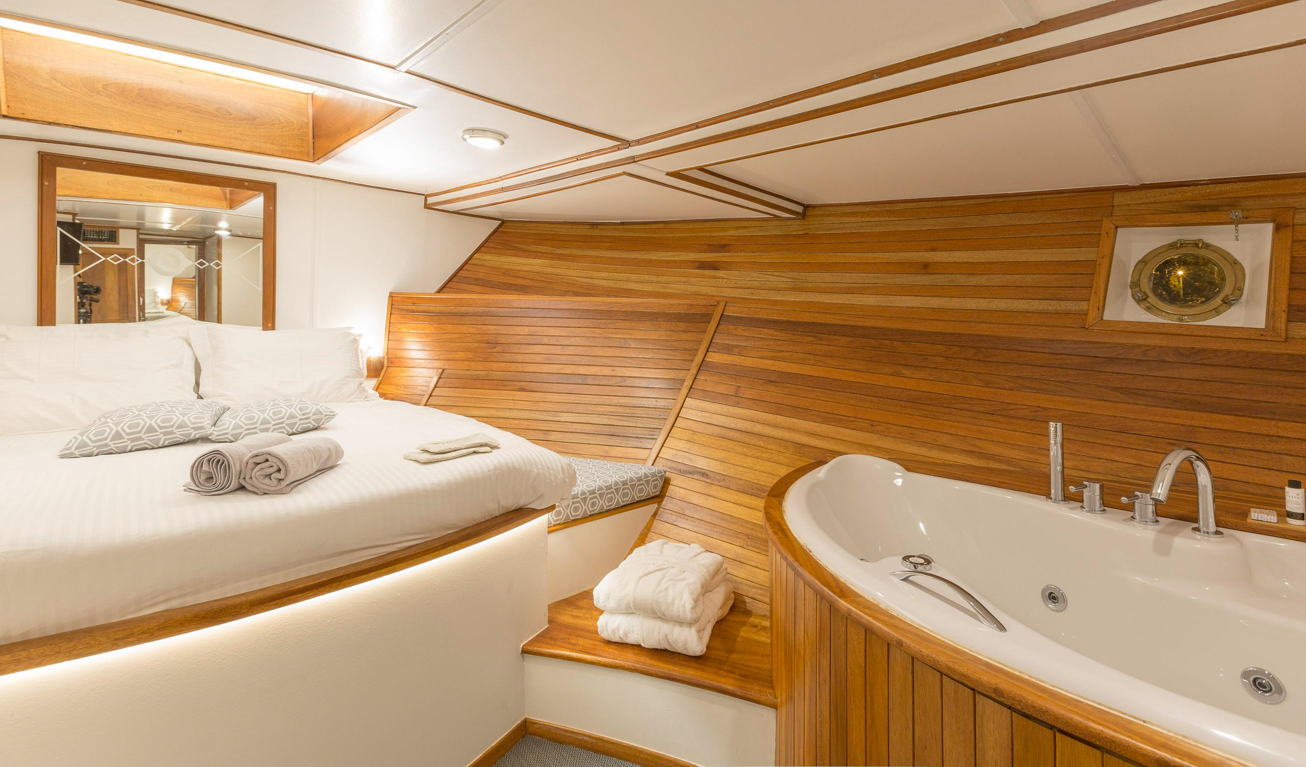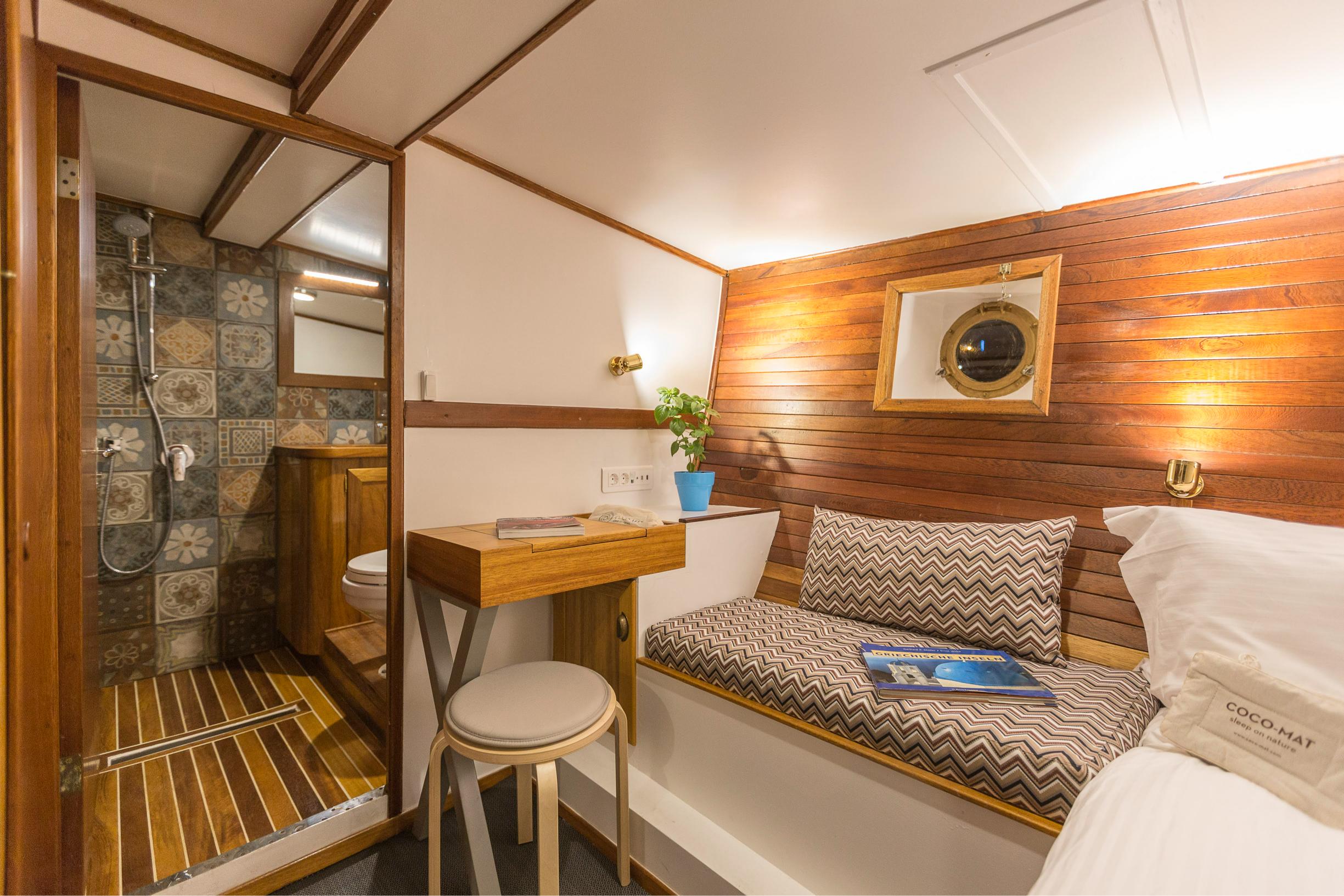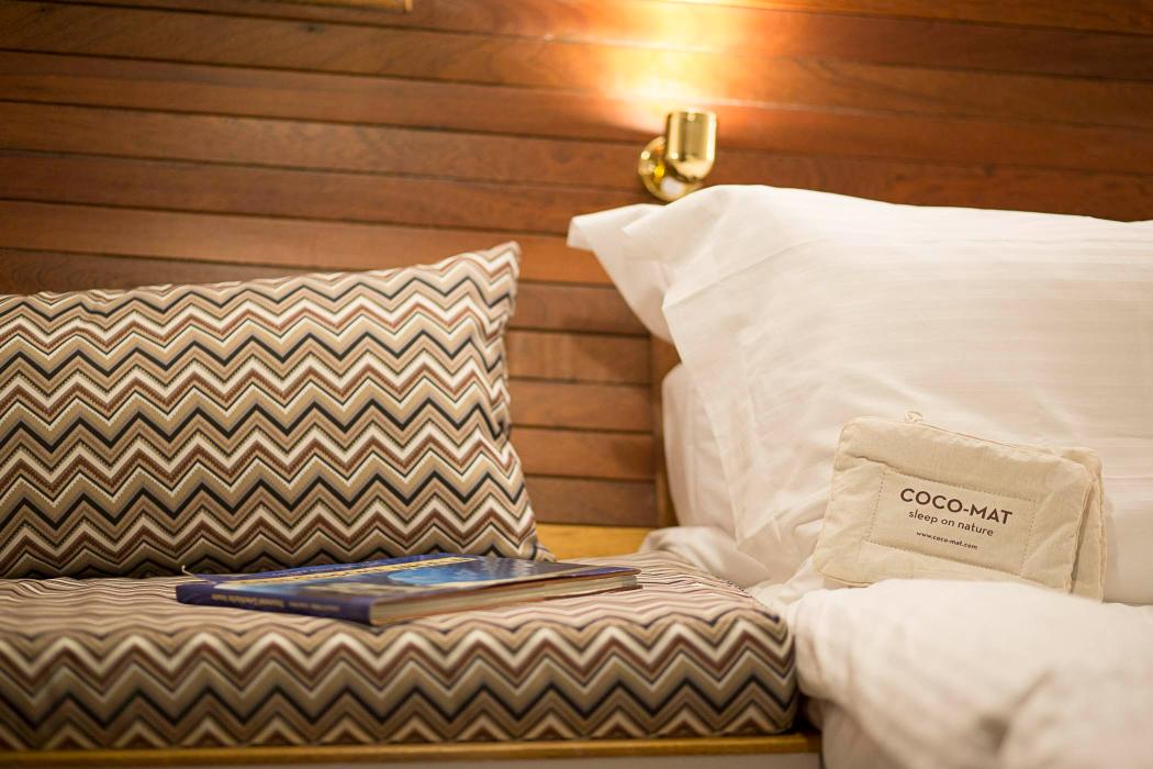 - Four luxury cabins for up to 8 guests, featuring COCO-Mat mattresses