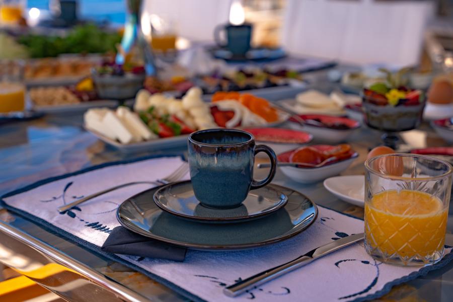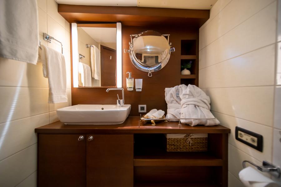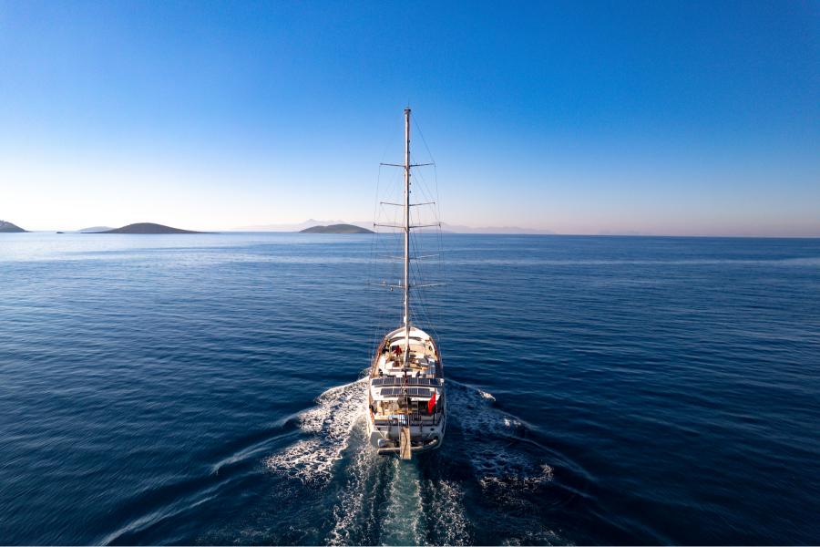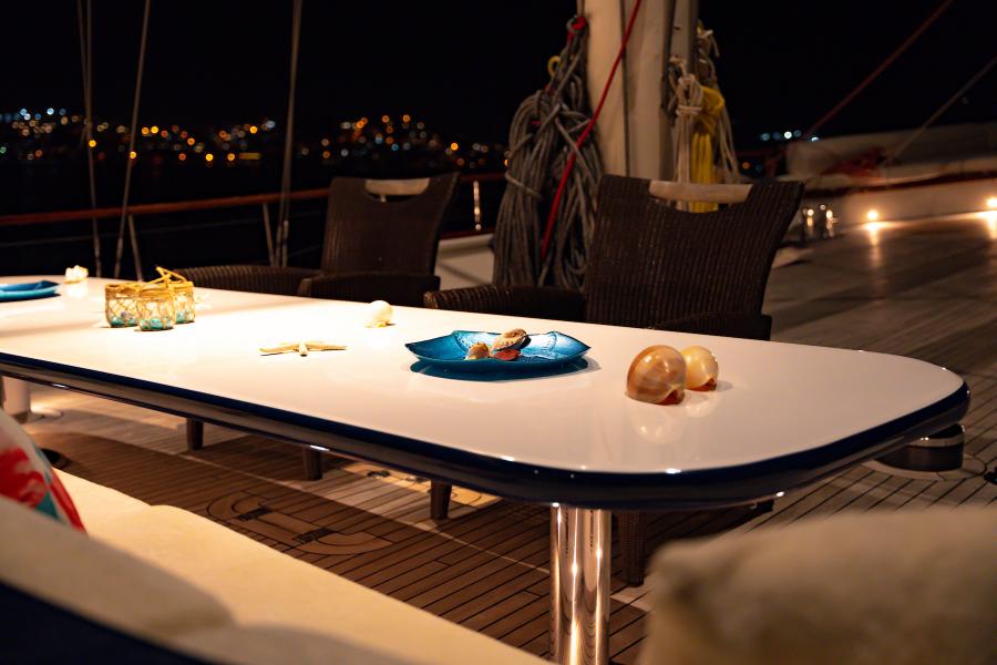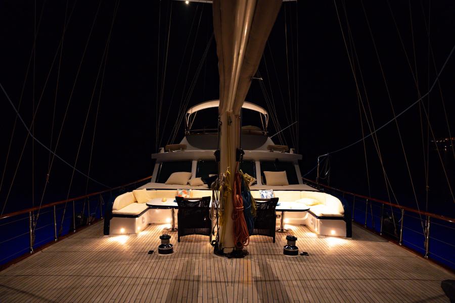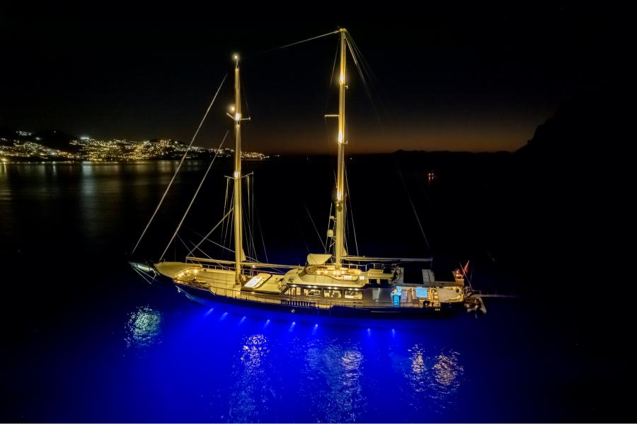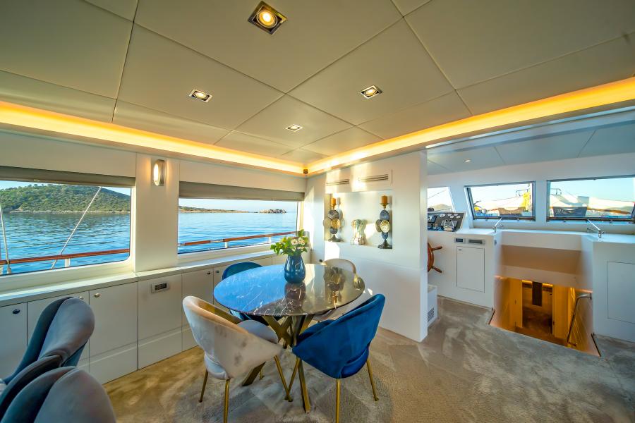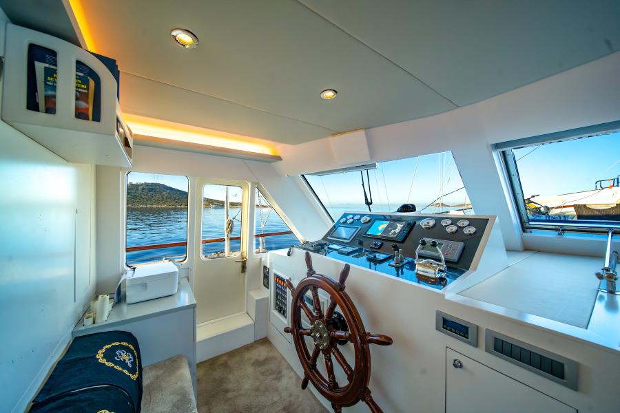 - Timeless Interior: A blend of traditional Turkish craftsmanship with polished teak decks, varnished mahogany railings, and elegant wooden finishes throughout the yacht.