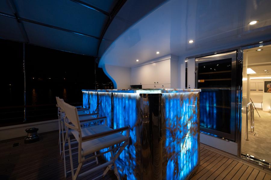 - Expansive Outdoor Spaces: Multiple decks featuring a sunbathing area on the aft deck, a cozy forward dining area, and a flybridge offering panoramic views and comfortable seating.
