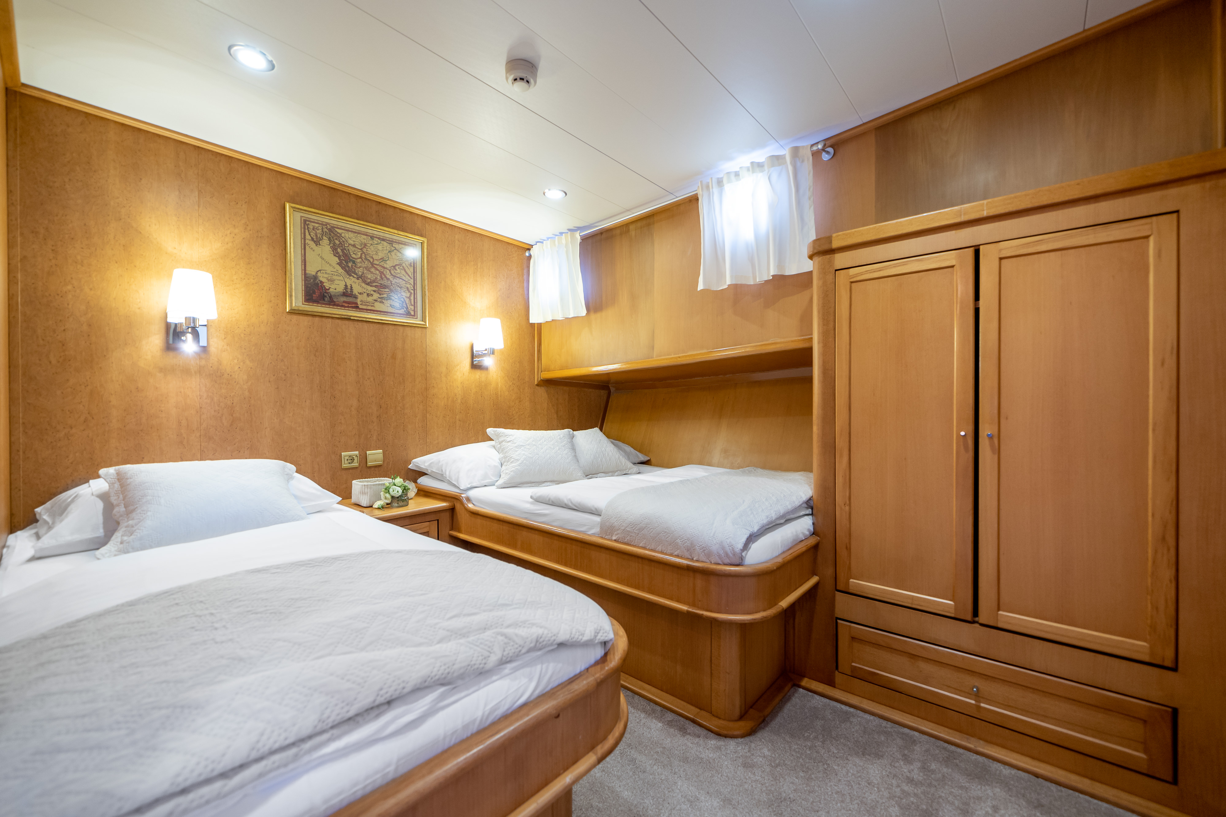 | Cabin configuration | 2 Double, 2 Twin, 2 Triple |