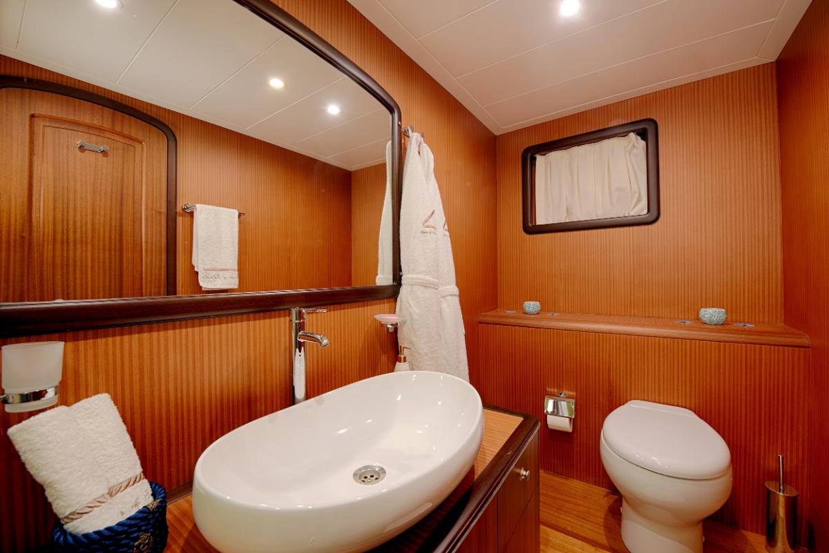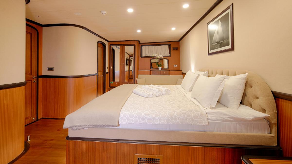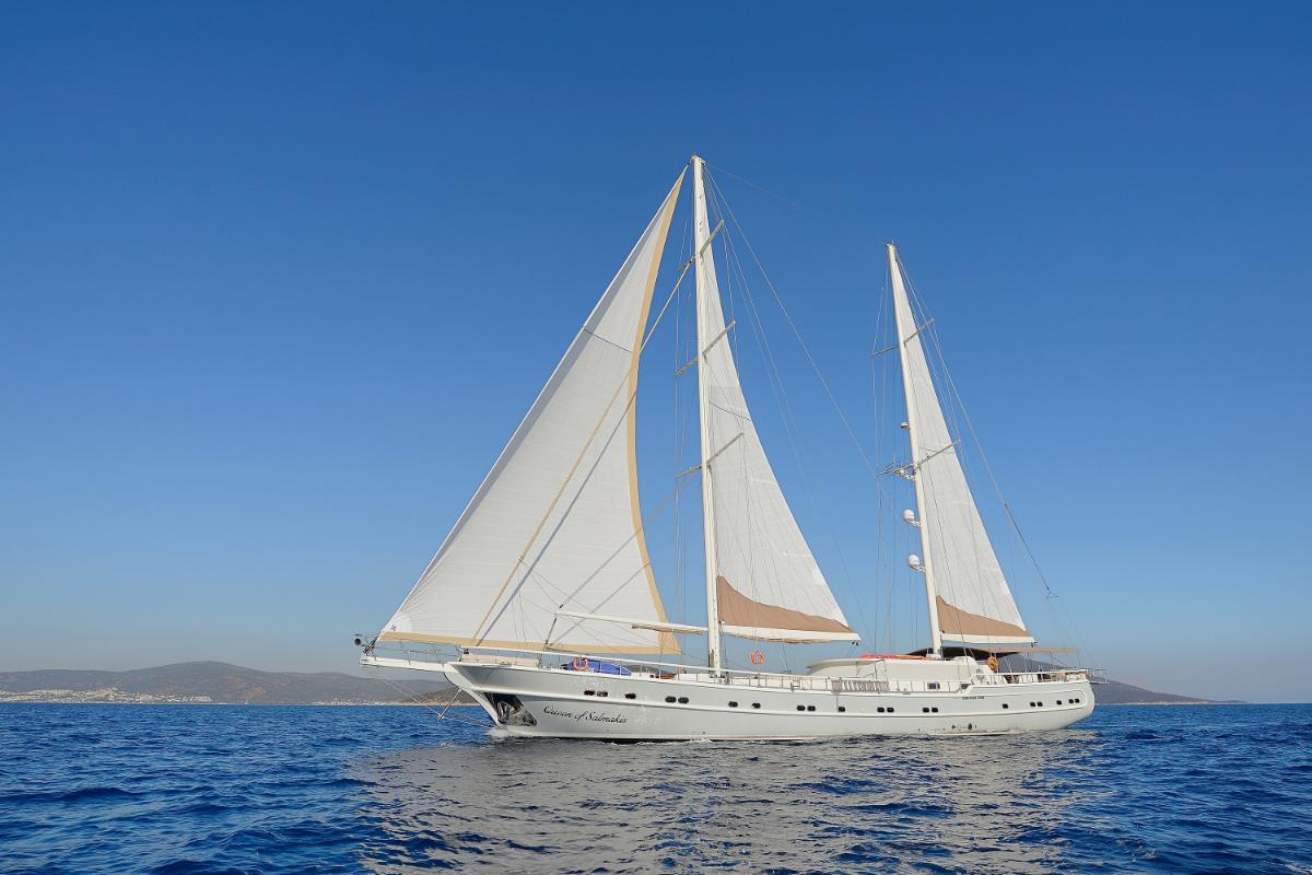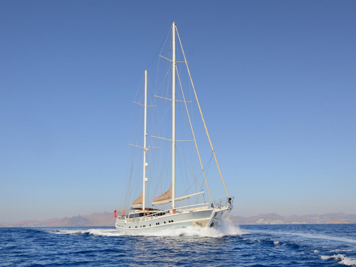 S/Y QUEEN OF SALMAKIS is a 39.1m (128.3ft) luxury sailing gulet, built in 2019, designed with modern owners and charter groups in mind. She offers an exceptional layout with spacious dining and sunbathing areas, perfect for large families or groups celebrating special occasions. The unique foredeck Jacuzzi and ample outdoor spaces enhance the comfort and luxury onboard. Accommodating up to 18 guests in 8 en-suite cabins, including two master suites, two triple cabins, and four double cabins, she also provides an expert crew of 7 to ensure top-notch service. The interior blends classic style with contemporary comforts, creating a timeless environment. Whether relaxing on the aft sun pads, enjoying casual meals on the forward deck, or unwinding in the Jacuzzi, guests are guaranteed a memorable experience.