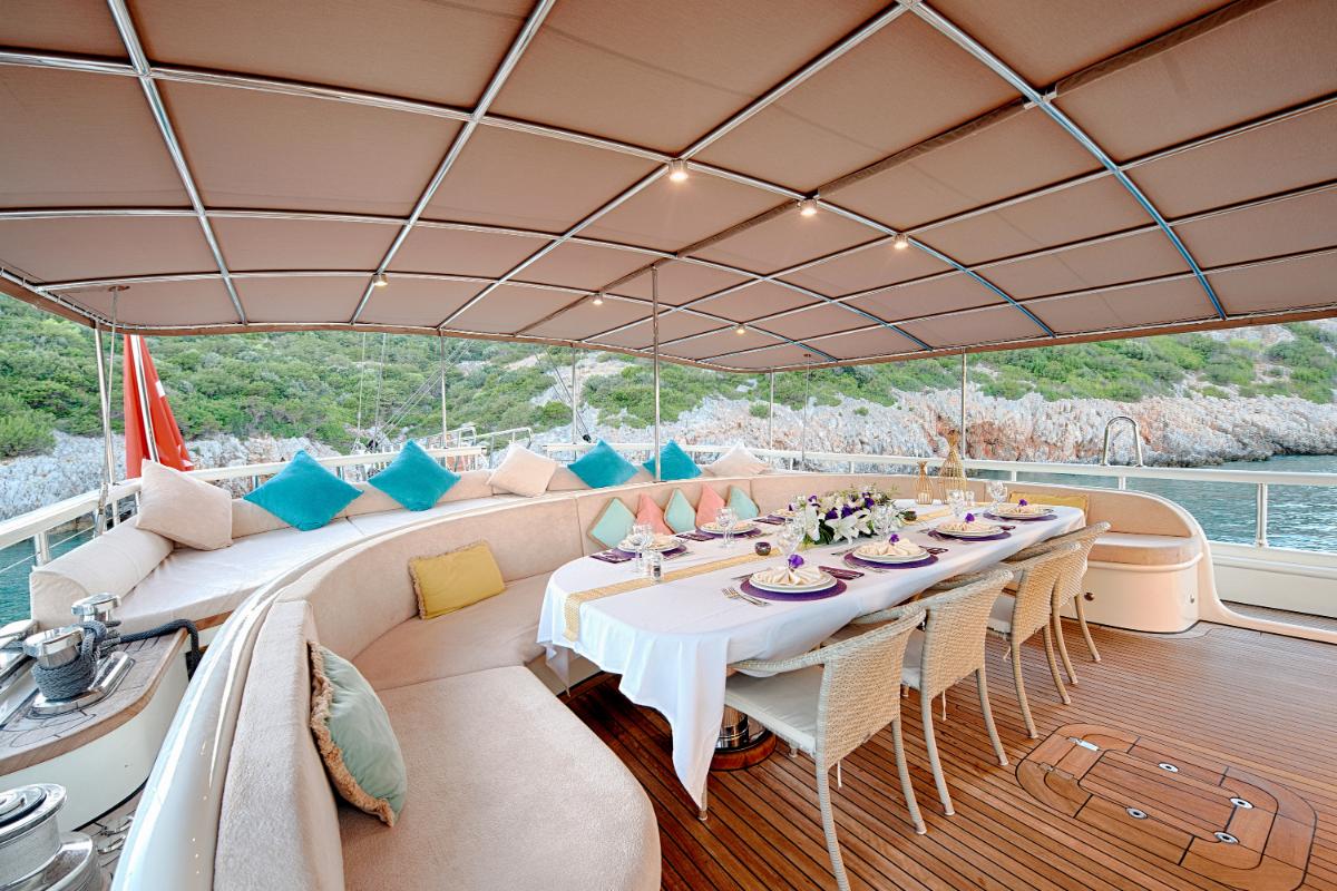 - Unique Outdoor Spaces: Features a foredeck Jacuzzi, sunbathing areas, and a shaded aft deck with a C-shaped sofa, dining table, and sun pads for ultimate relaxation.