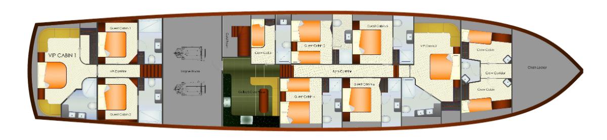 - Spacious Accommodation: Sleeps up to 18 guests in 8 en-suite cabins, including 2 master suites, 2 triple cabins, and 4 double cabins, offering ample space and comfort for large groups.