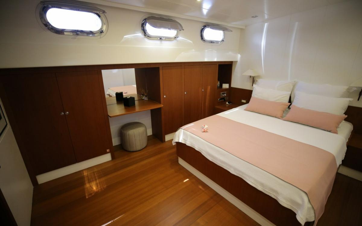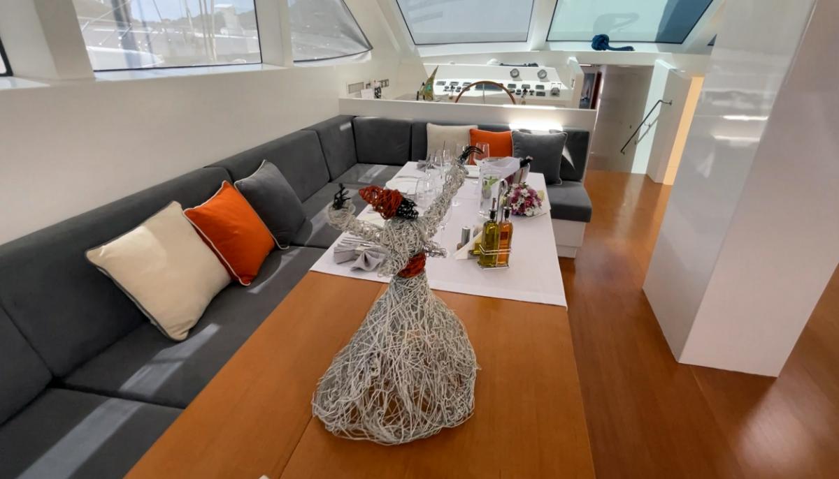 - Modern Luxury Interior: With a sleek combination of white and Burmese teak, the yacht's minimalist design creates a serene, modern atmosphere, perfect for relaxing after a day of exploration.