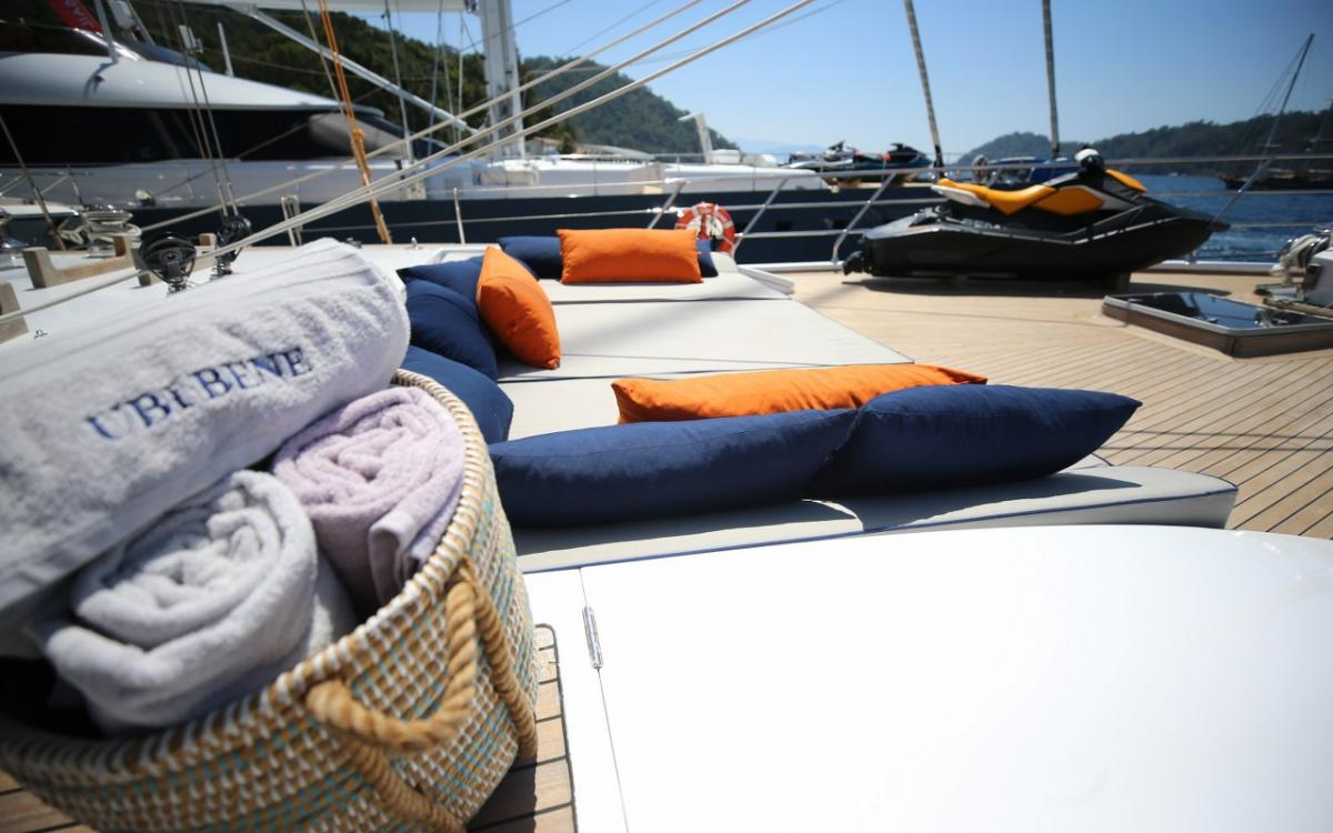 UBI BENE is a stunning 44-meter (144ft) luxury schooner, built in 2009 and extensively refitted in 2020/2021. This elegant yacht offers spacious contemporary interiors and expansive outdoor living areas, ideal for both relaxation and entertainment. Accommodating 12 guests in 5 cabins, including a master suite and two queen cabins, she combines comfort with modern luxury. The yacht features an airy saloon, a fully equipped aft deck with dining options, and a range of water toys for fun adventures. With a crew of 7, UBI BENE promises exceptional service and a memorable charter experience.