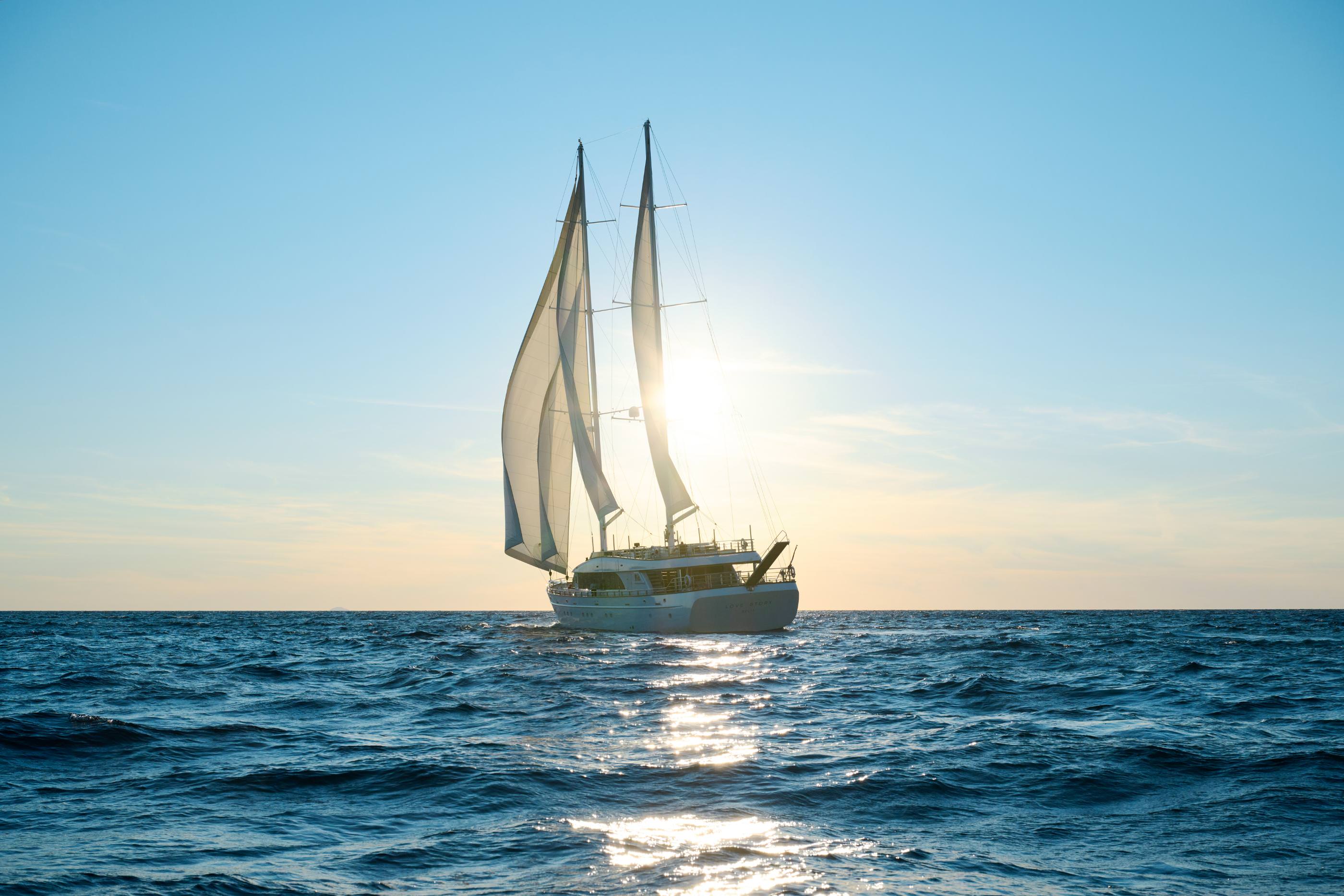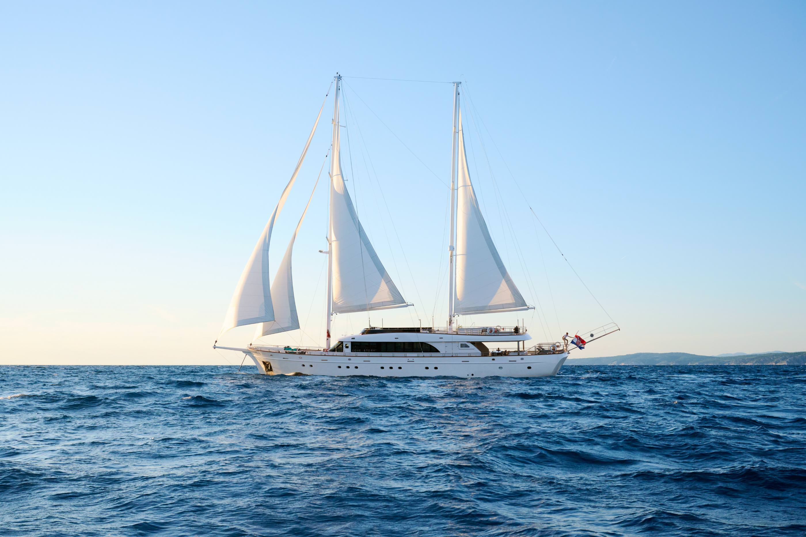 Love Story is a luxurious sailing yacht that debuted in 2021, offering an elegant Adriatic escape for up to 12 guests. Its sleek design includes six spacious, modern cabins, a refined lounge, and a bar with gold and silver accents. Two decks provide ample space for relaxation, from morning coffee spots to sunset cocktails. The aft deck hosts an outdoor dining area with stunning views, while the sun deck features a jacuzzi and ample seating. Equipped with a swim platform and a variety of water toys, Love Story ensures adventure and relaxation for a memorable vacation.