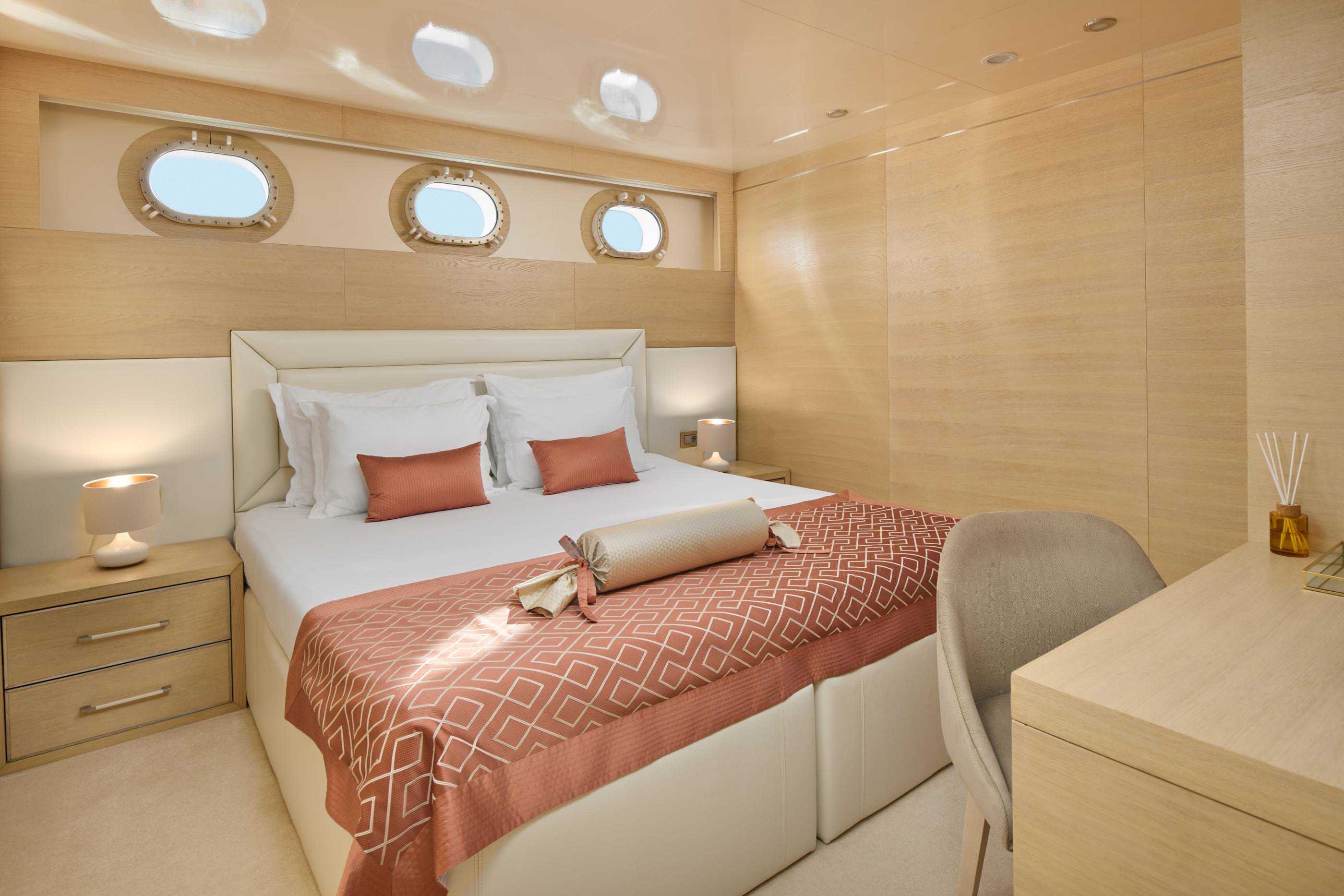 | Cabin configuration | 2 x Master, 2 x Double, 2 x Double + single bed |