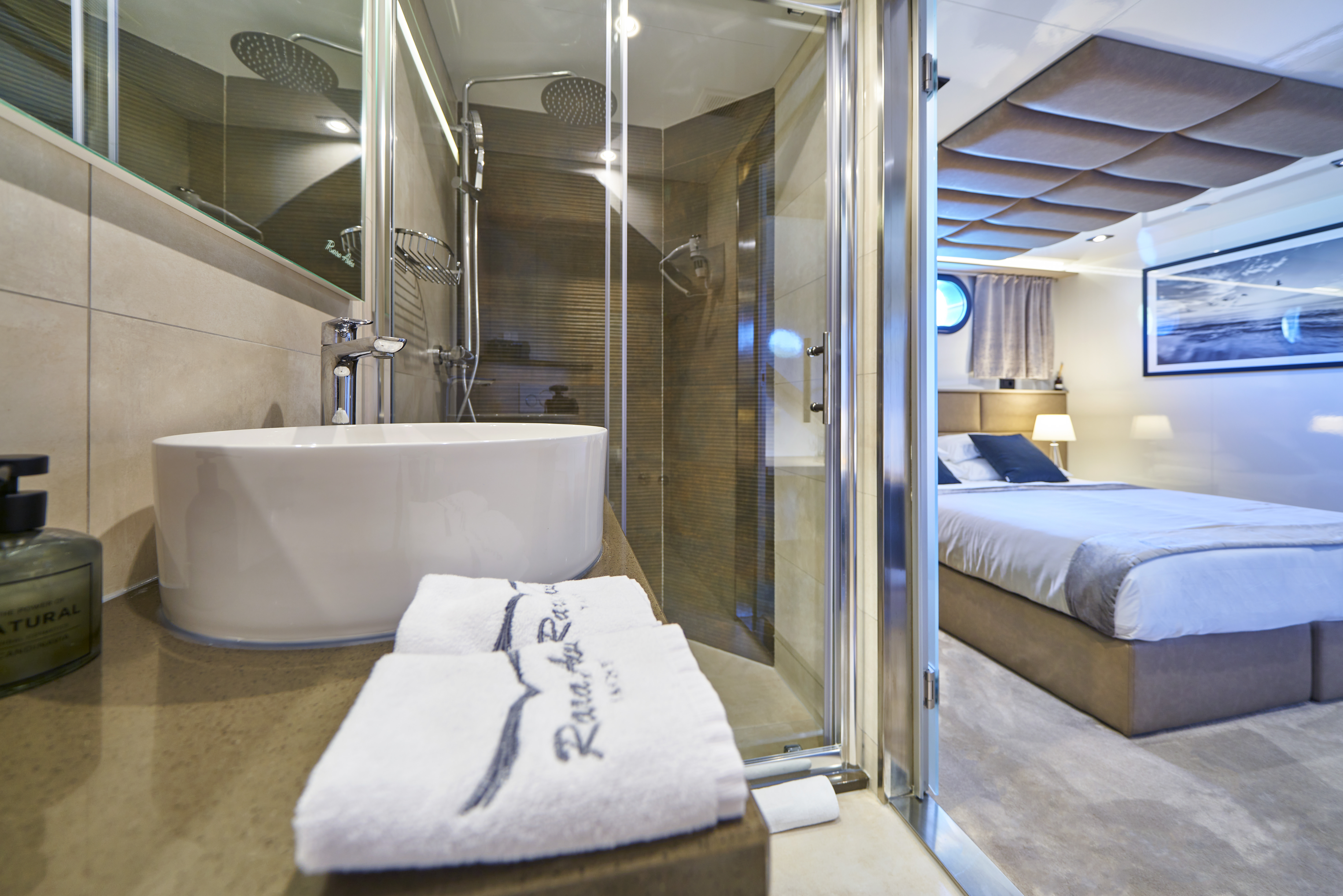 Six spacious cabins with private bathrooms and air conditioning, ensuring maximum comfort for up to 12 guests. - Exceptional Crew