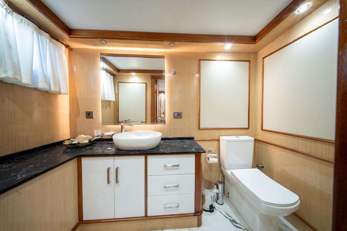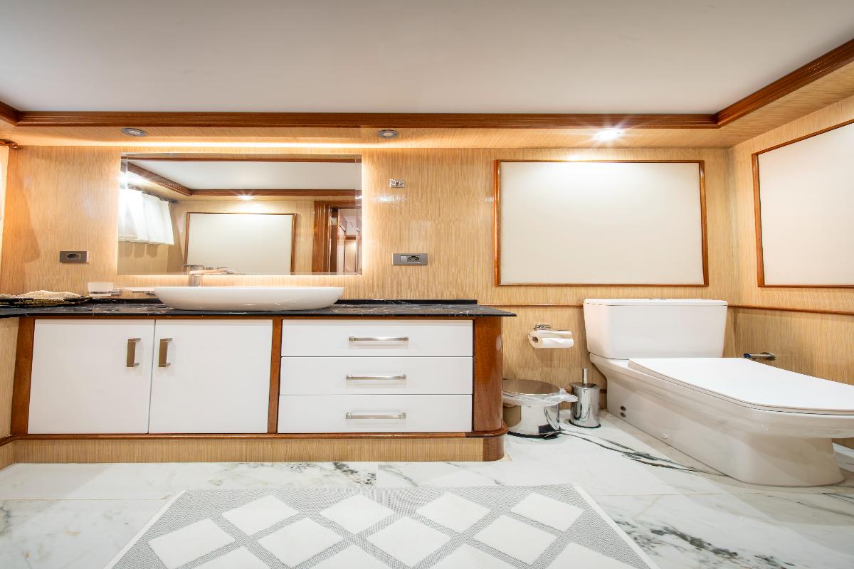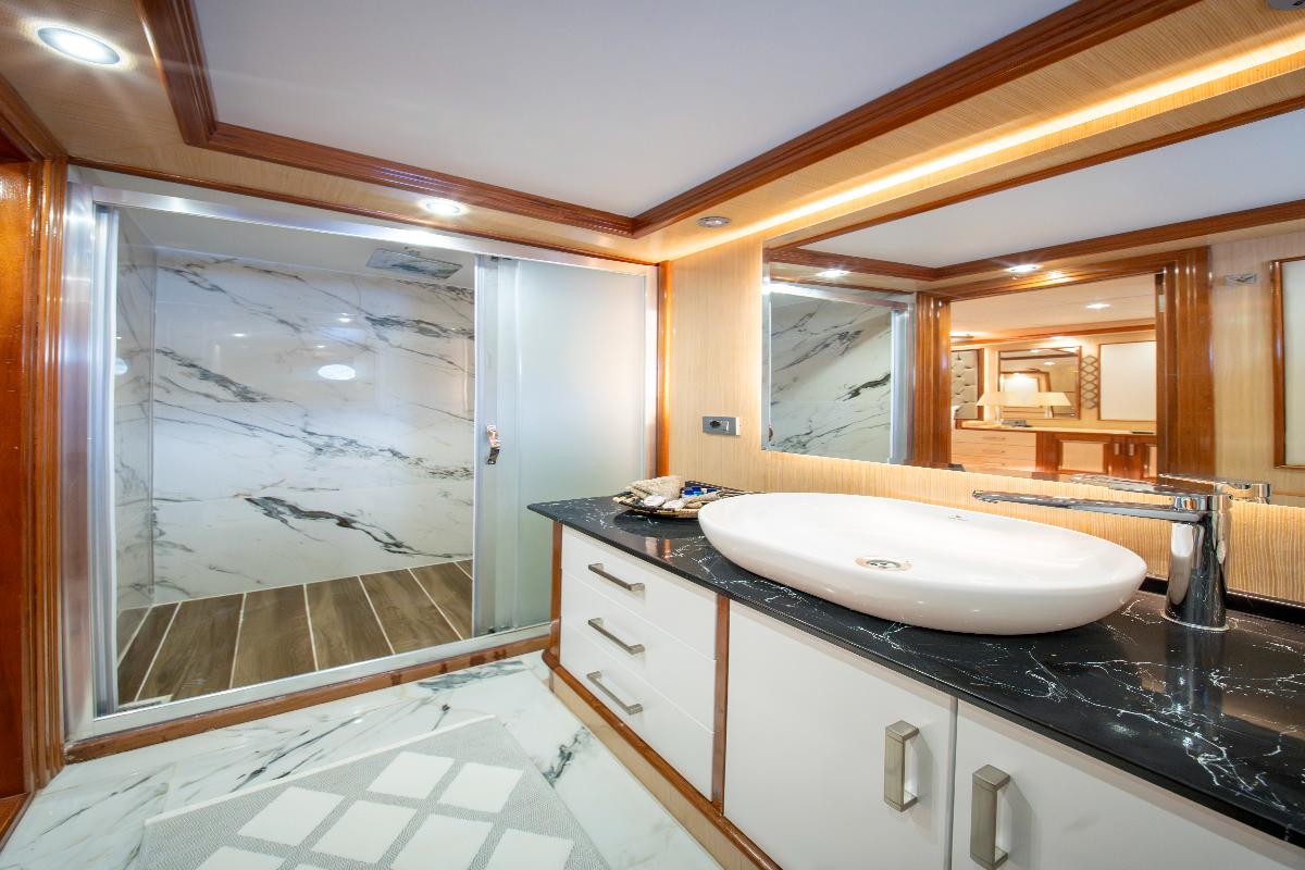 - Spacious Interior & Decks: Expansive teak decks and indoor salon with panoramic views, featuring shaded alfresco dining areas, large sunbathing zones with loungers and awnings, a Jacuzzi-ready deck, outdoor showers, BBQ setup, and sea ladder for easy access to the water.