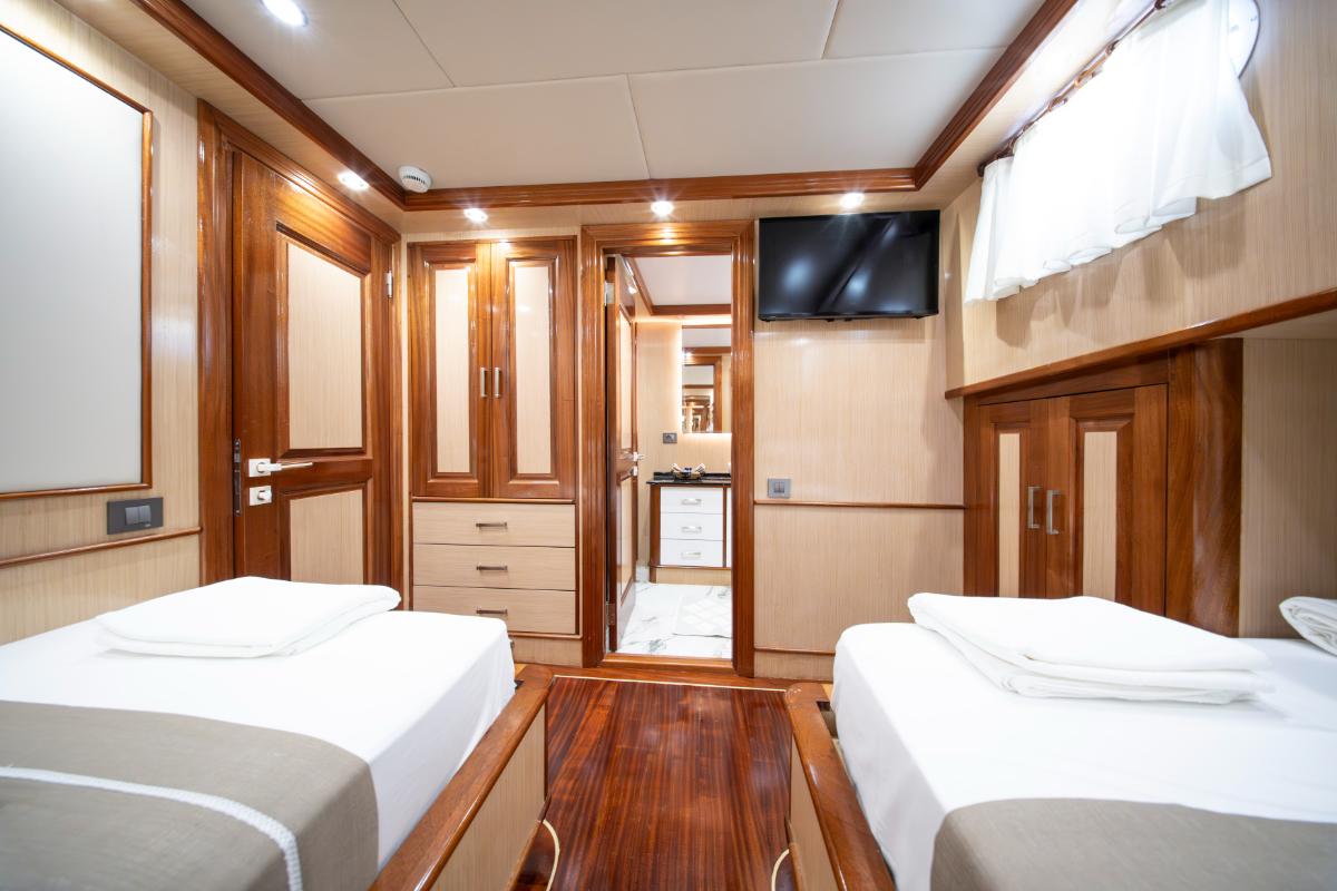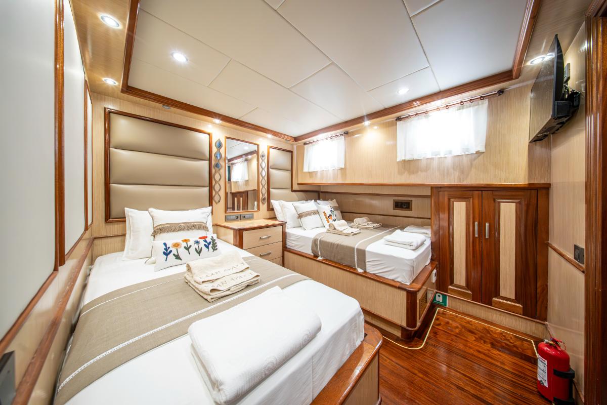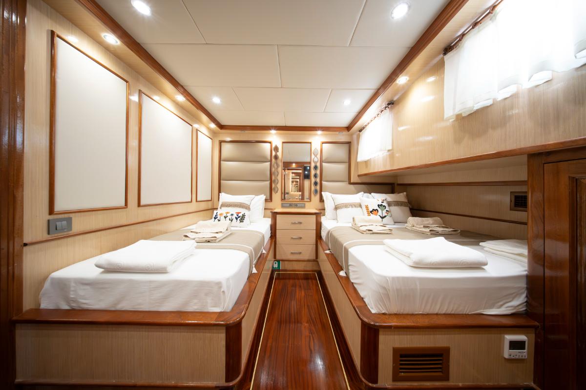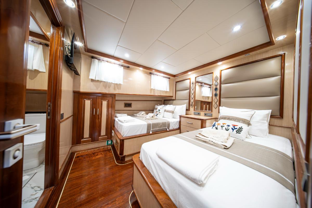 - Luxurious Accommodations for 12 Guests: Six elegantly furnished cabins, including 2 master cabins, 2 double cabins, and 2 twin cabins, each with an en-suite bathroom.