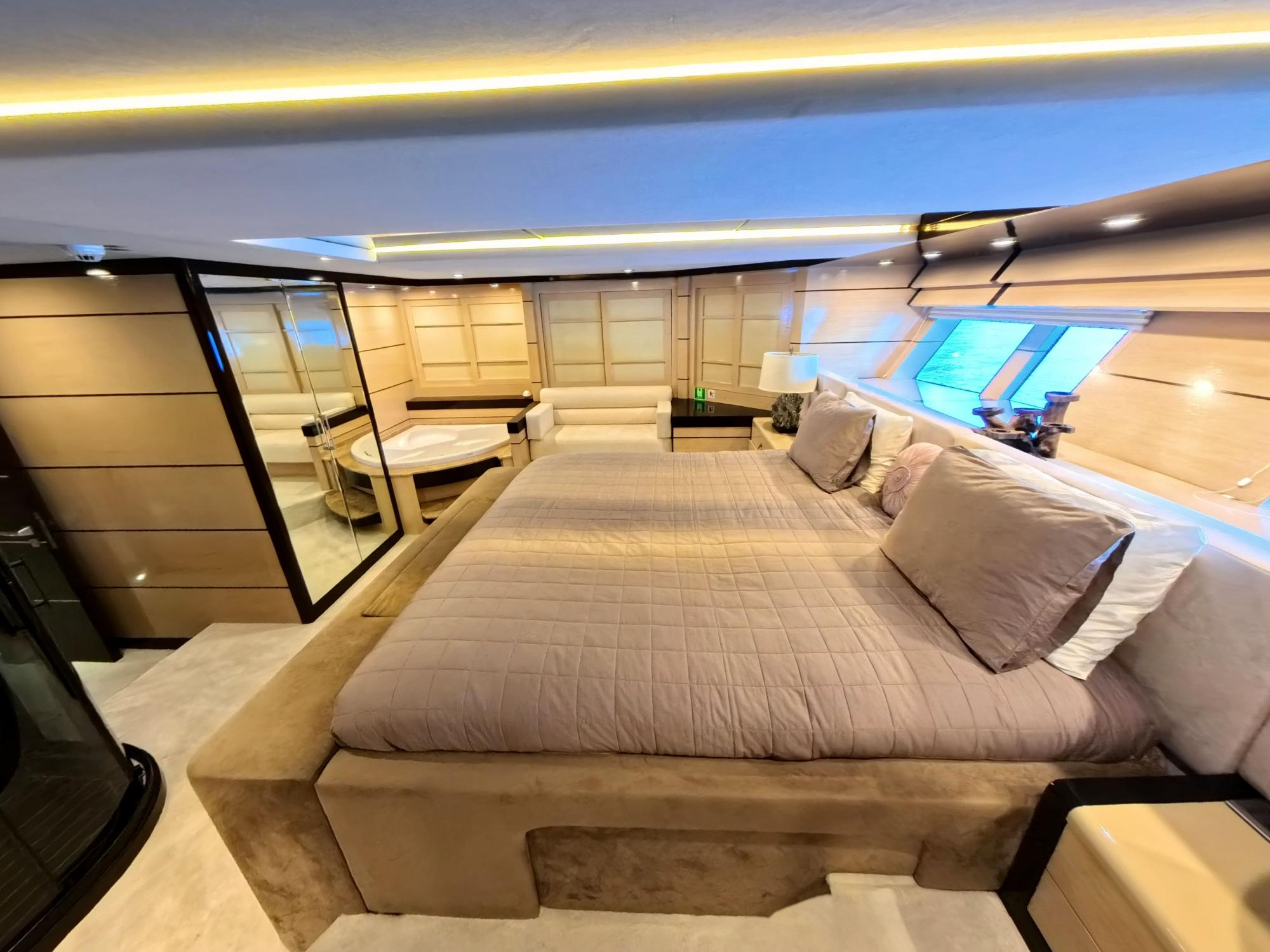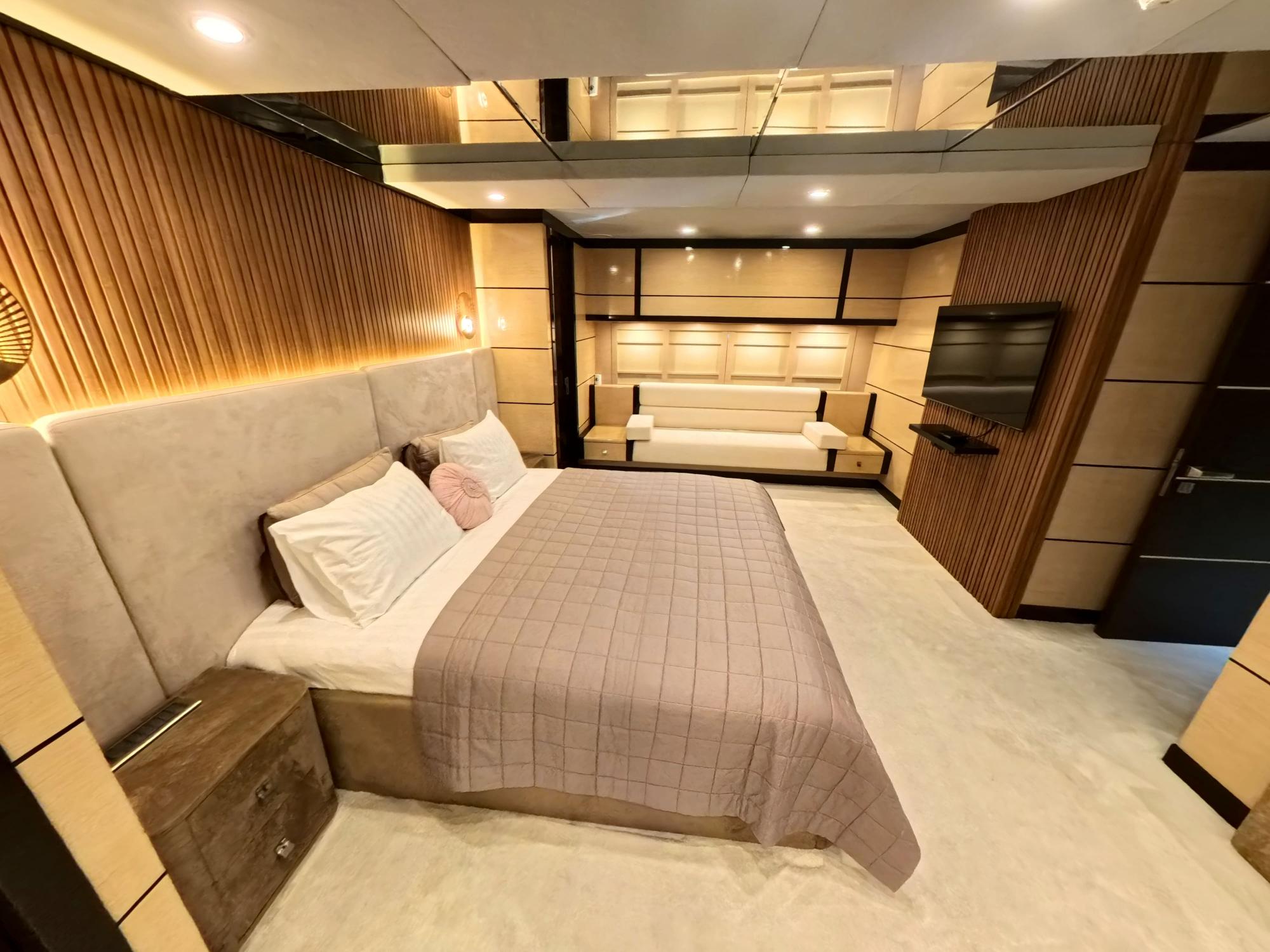 - Expansive Outdoor Areas: The aft deck offers a generous seating area and dining table, while the upper deck boasts a Jacuzzi, additional lounge space, and a dining table for al fresco meals with breathtaking views.