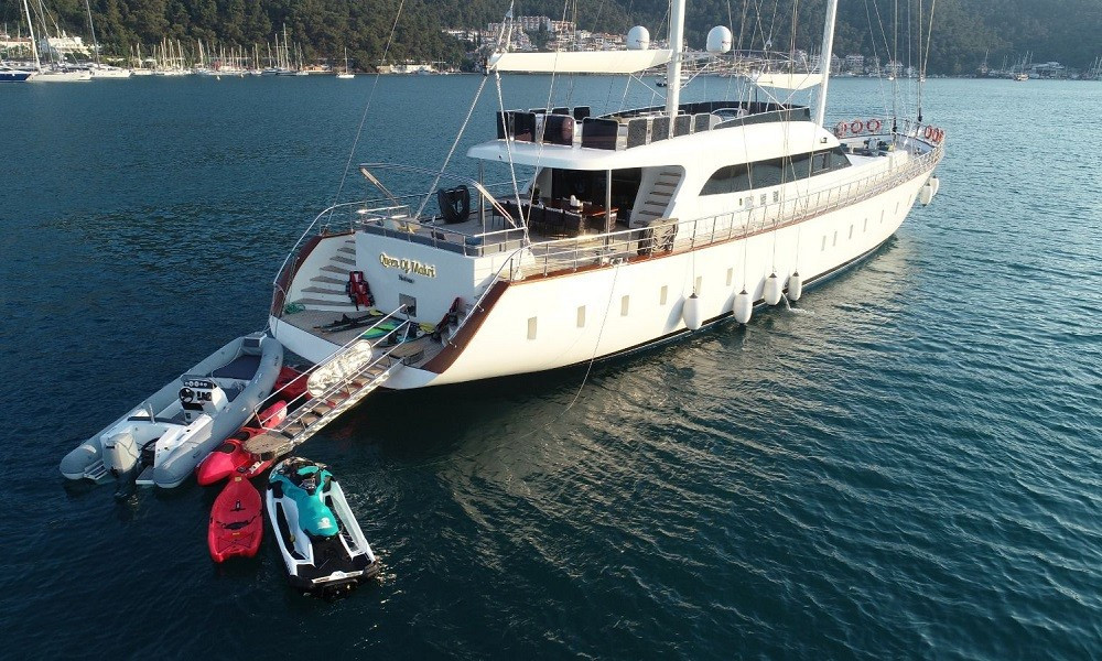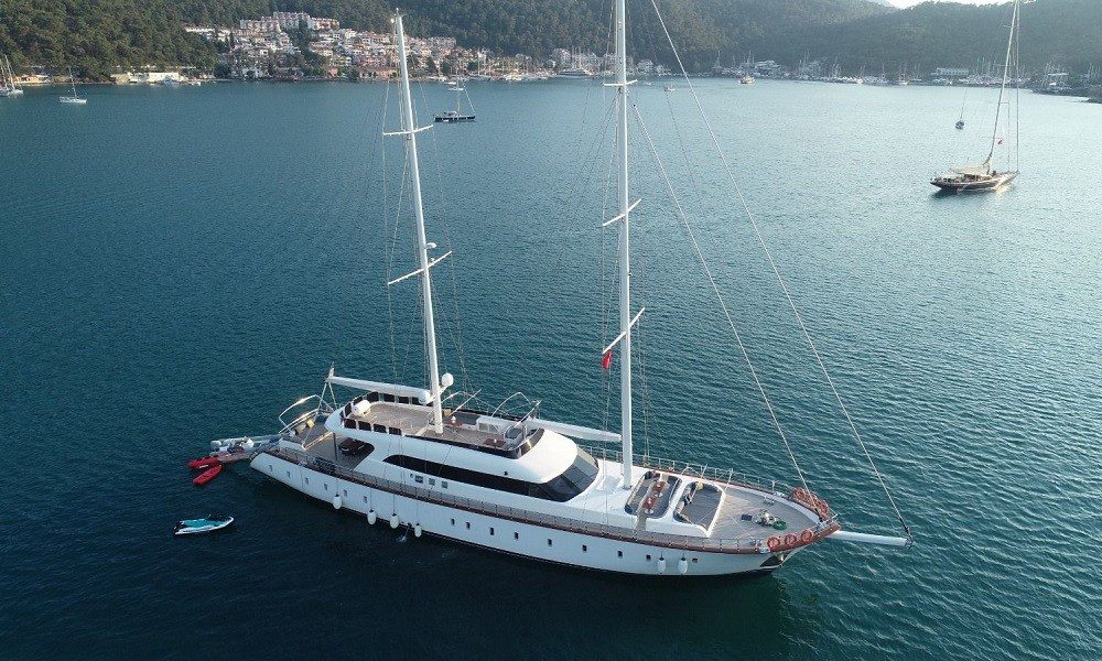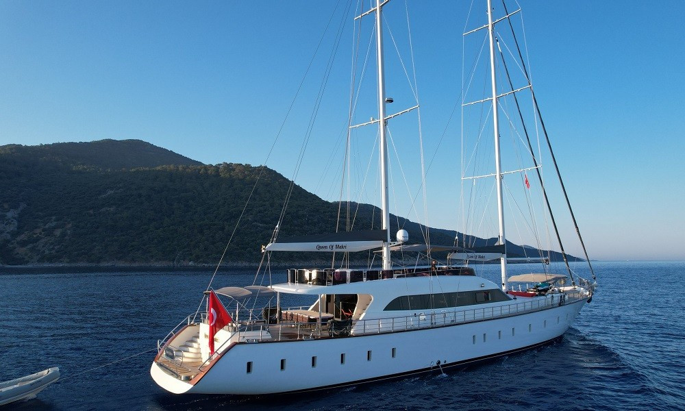 Queen of Makri is a luxurious 37 meter wood-hulled motor sailer, perfect for exploring the stunning East Mediterranean. With spacious decks, elegant interiors, a deck jacuzzi, and a wide range of water toys, she offers the ultimate blend of comfort and adventure. Accommodating up to 12 guests in beautifully designed cabins, along with a dedicated 6-member crew, she ensures an unforgettable yachting experience. Whether relaxing in the sun, enjoying alfresco dining, or diving into crystal-clear waters, Queen of Makri is the ideal choice for a family-friendly luxury escape.