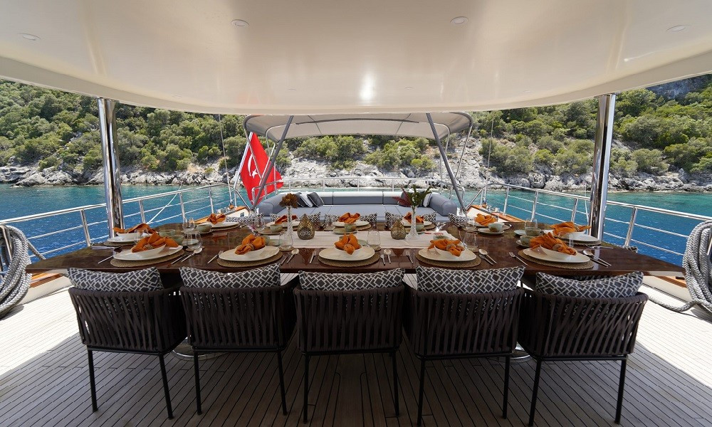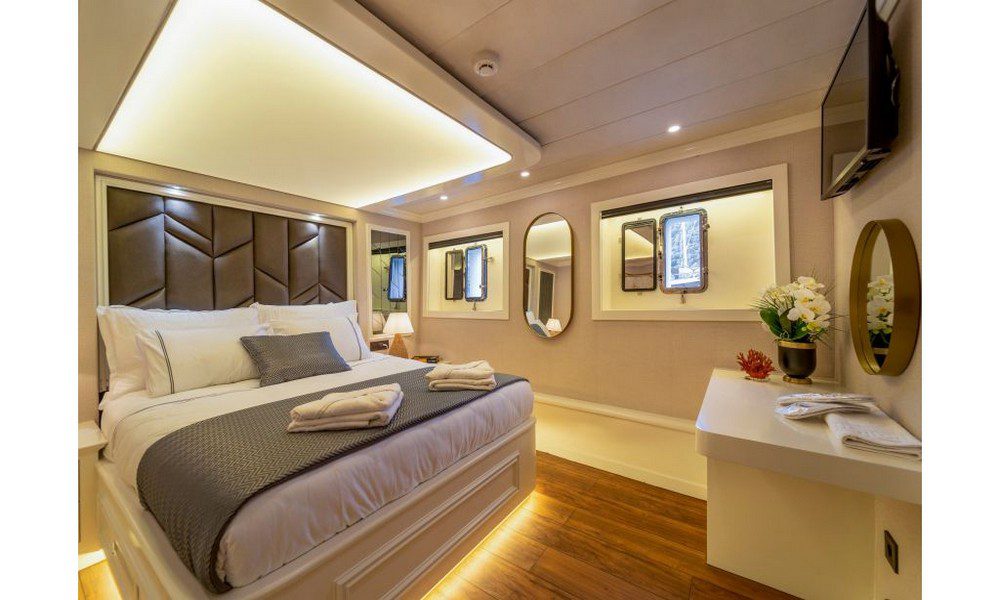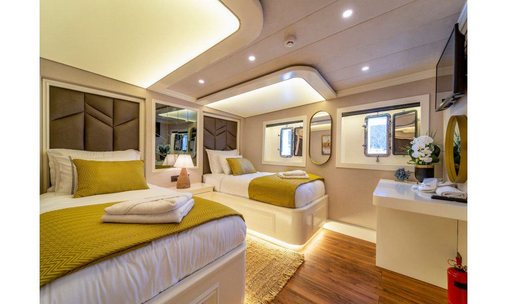 - Luxurious Accommodation: Accommodates up to 12 guests in 5 double, and 1 twin cabin, all with a refined and contemporary interior.