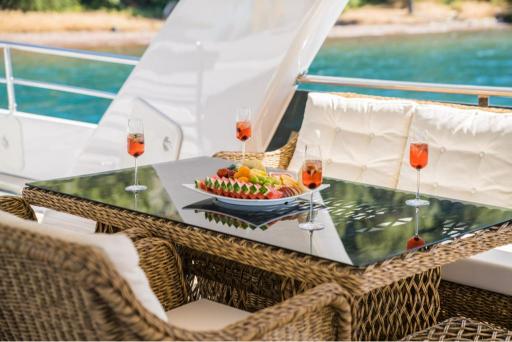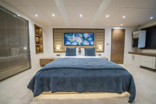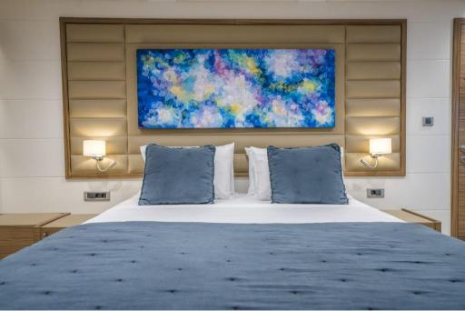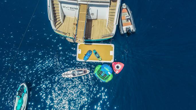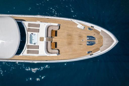 Powered by twin MAN engines, she cruises smoothly at 11 knots, reaching a top speed of 12 knots. Her impressive toy collection includes Jet Skis, waterskis, wakeboards, paddleboards, snorkeling gear, and more, along with two tenders for seamless exploration.