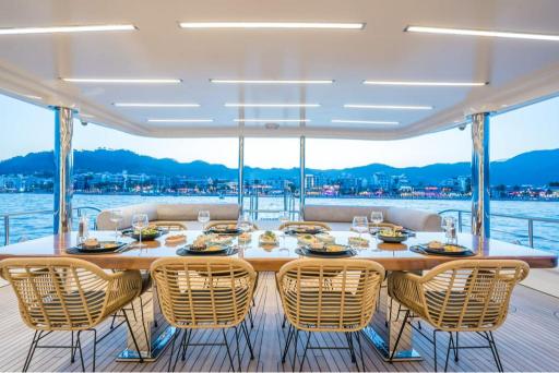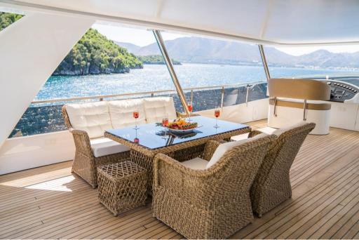 Designed for relaxation and entertainment, she boasts sumptuous living areas, a deck jacuzzi, and underwater lights for a stunning ambiance after dark. With Wi-Fi, air conditioning, and a professional crew of 6, every moment on board is pure comfort.