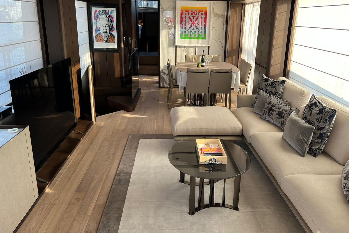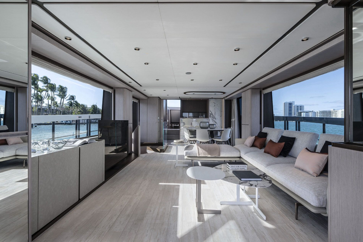 - Refined Interiors: The salon features flowing, harmonious lines and a lavish dining area, creating a welcoming and elegant space for relaxation and entertaining.