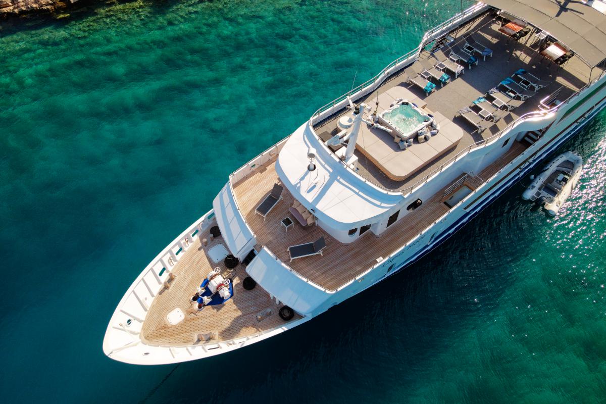 M/Y Lupus Mare is a stunning 43-meter yacht designed to capture the true essence of the Adriatic spirit. Yacht was built in 2011 and it is tailored for those who seek both luxury and authenticity. Accommodating up to 32 guests in 15 beautifully appointed en-suite cabins, Lupus Mare blends modern comfort with timeless charm. Each cabin is thoughtfully designed to provide a peaceful retreat at sea, while the yacht’s interior exudes the inviting atmosphere filled with natural light, elegant finishes, and a welcoming sense of space. Chic saloon, Jacuzzi on the sundeck, Finnish sauna, private gym or cinema lounge are just some of areas you can indulge in ultimate relaxation.Guided by a passionate 10-member local crew, known for their professionalism, warmth, and attention to detail, your voyage aboard Lupus Mare becomes more than a holiday — it’s a story to remember.