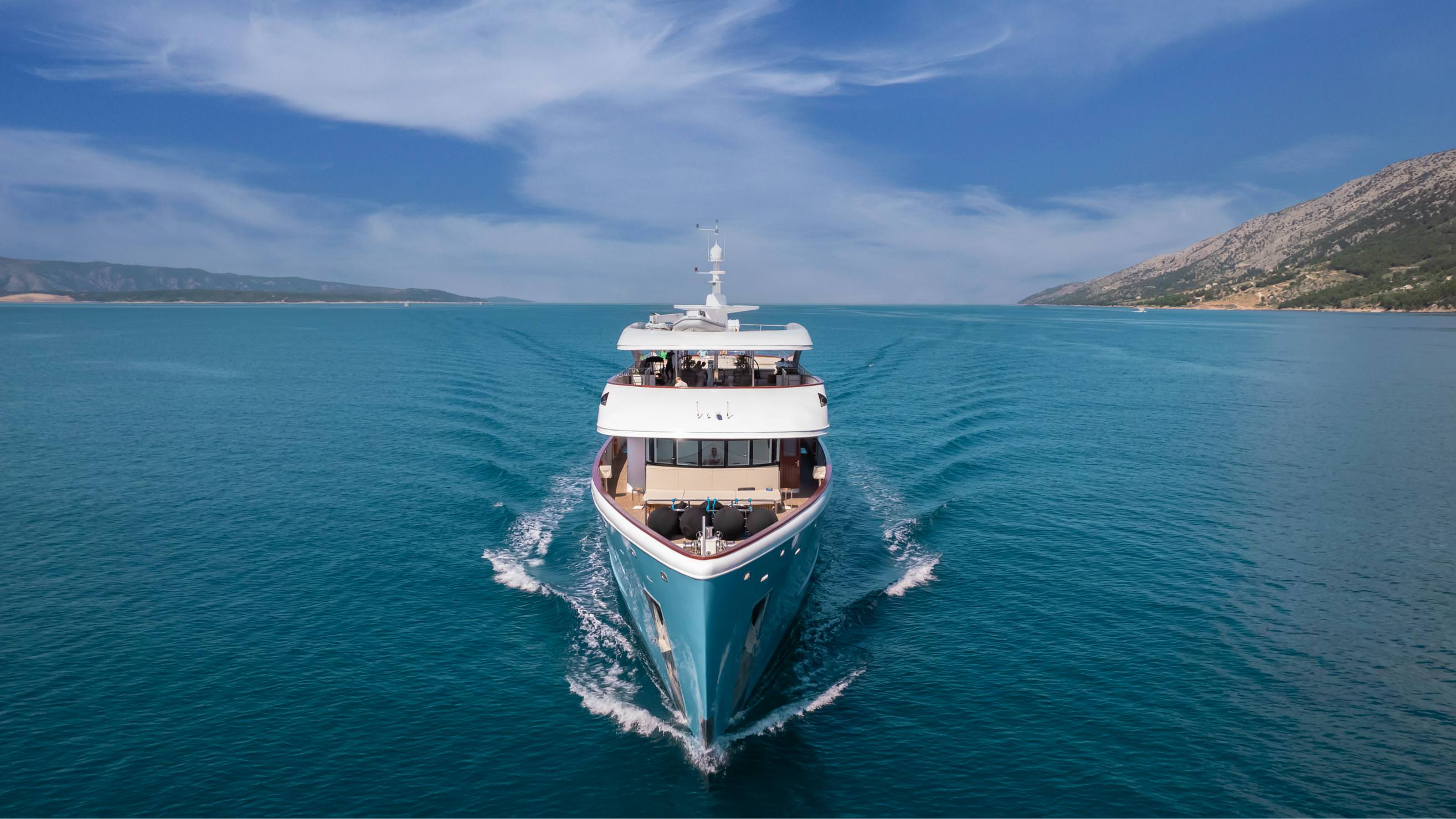 Spend your days lounging on the huge 160m² sundeck with a Jacuzzi, open bar, and even an outdoor fireplace. Enjoy soothing massages, dine under the stars, or dive into the crystal-clear sea with a full range of water toys. Kids have their own playroom, adults can relax with a movie in the cinema room, and the attentive 12-person crew—led by a seasoned captain from a long line of yachting pros—makes sure everything runs smoothly.