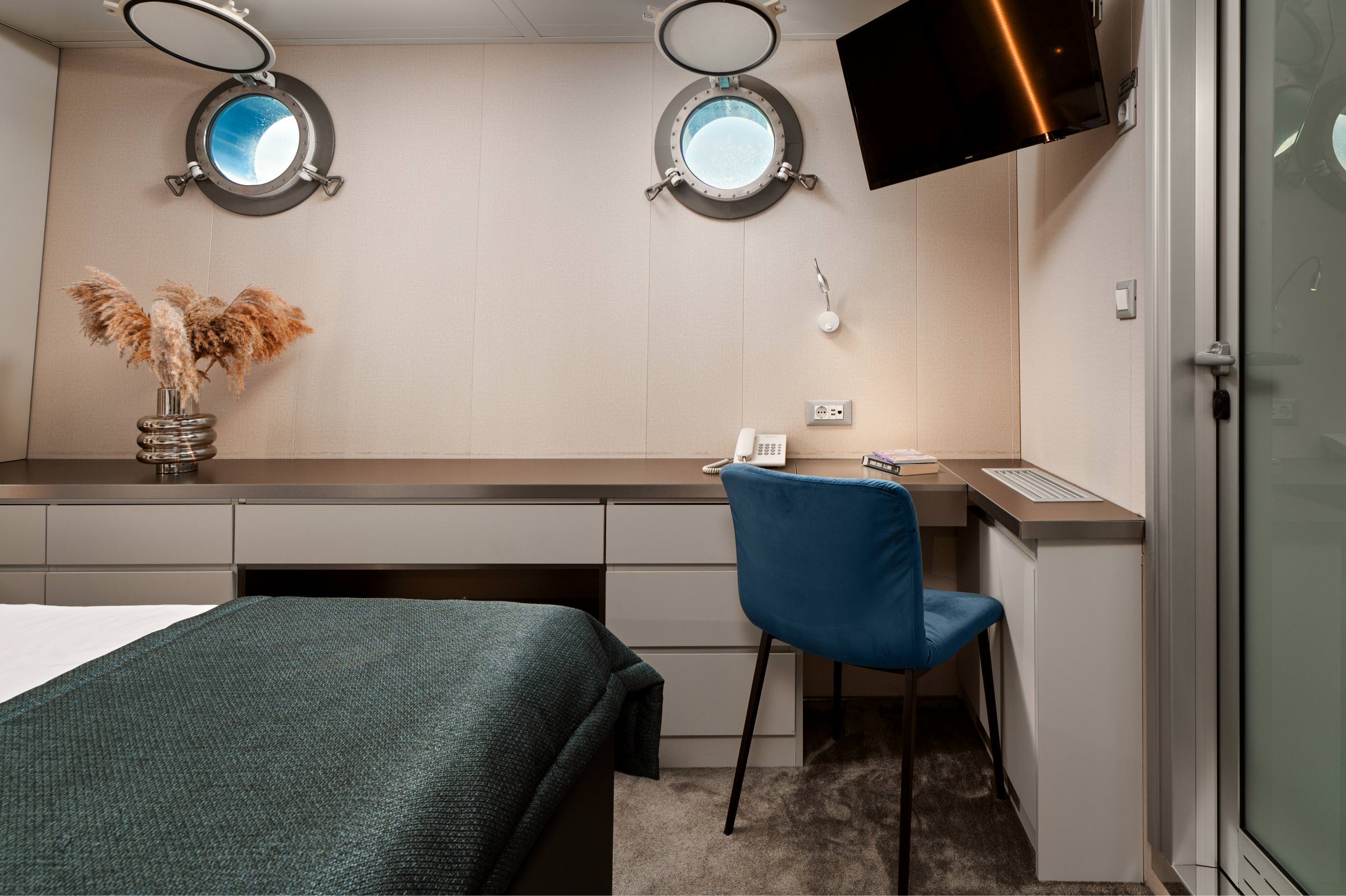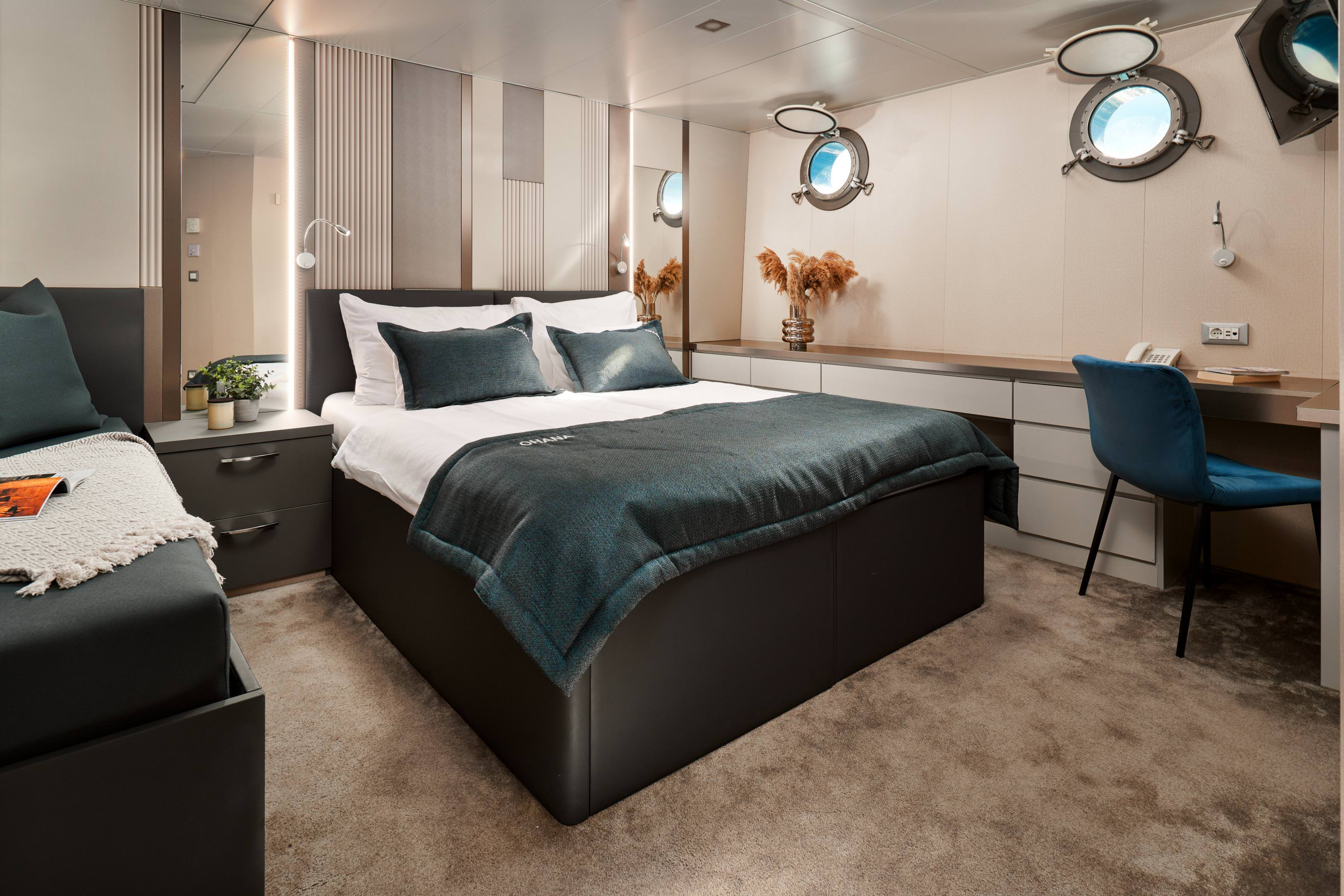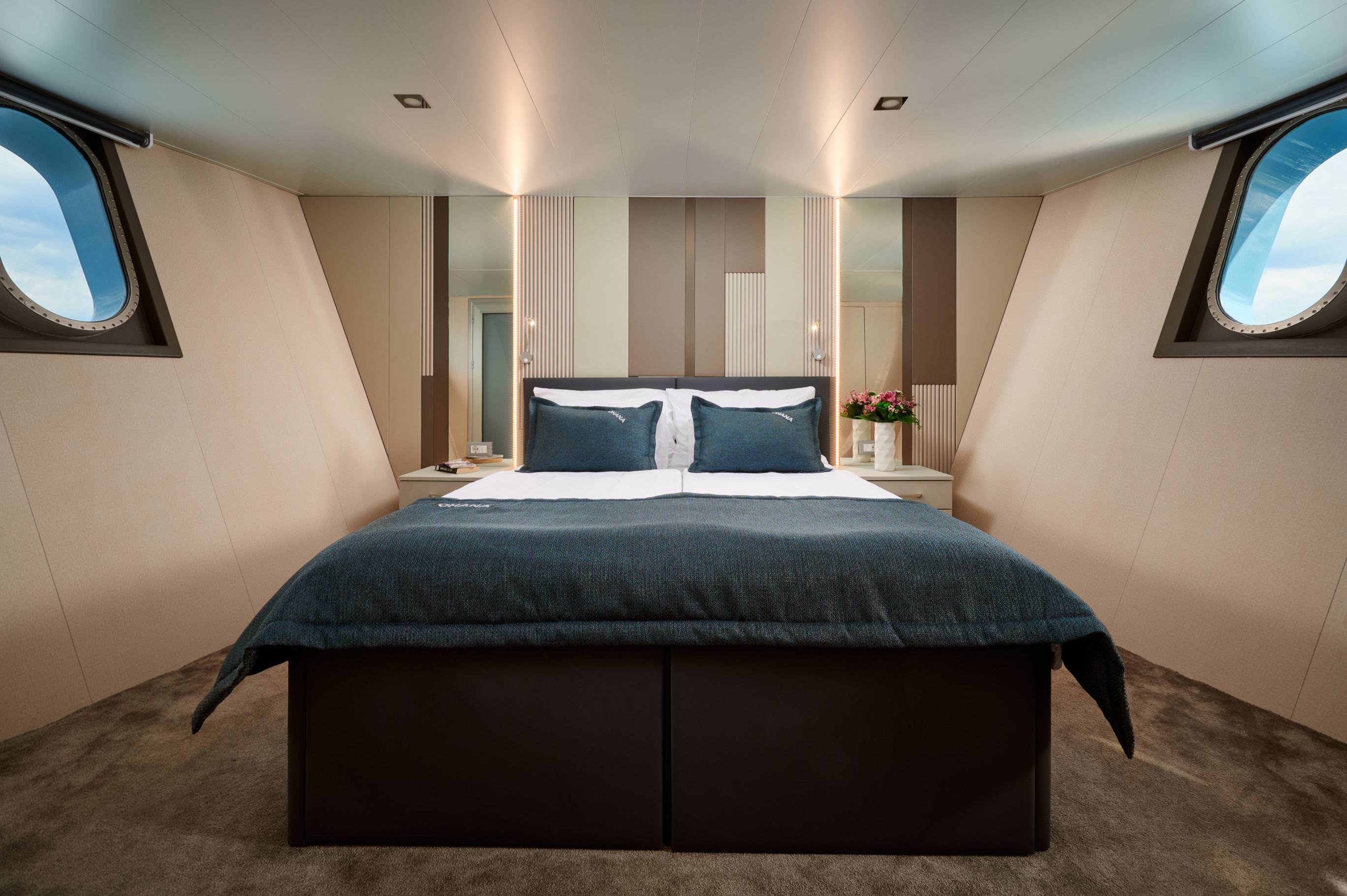 - 14 Ensuite Cabins for 30 Guests: Spacious and elegantly designed, including a master suite with walk-in closet and bathtub, plus VIP, double, twin, and triple cabins across three decks.