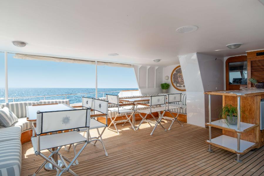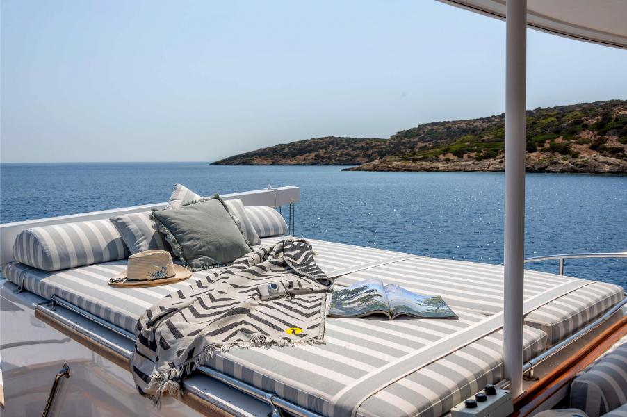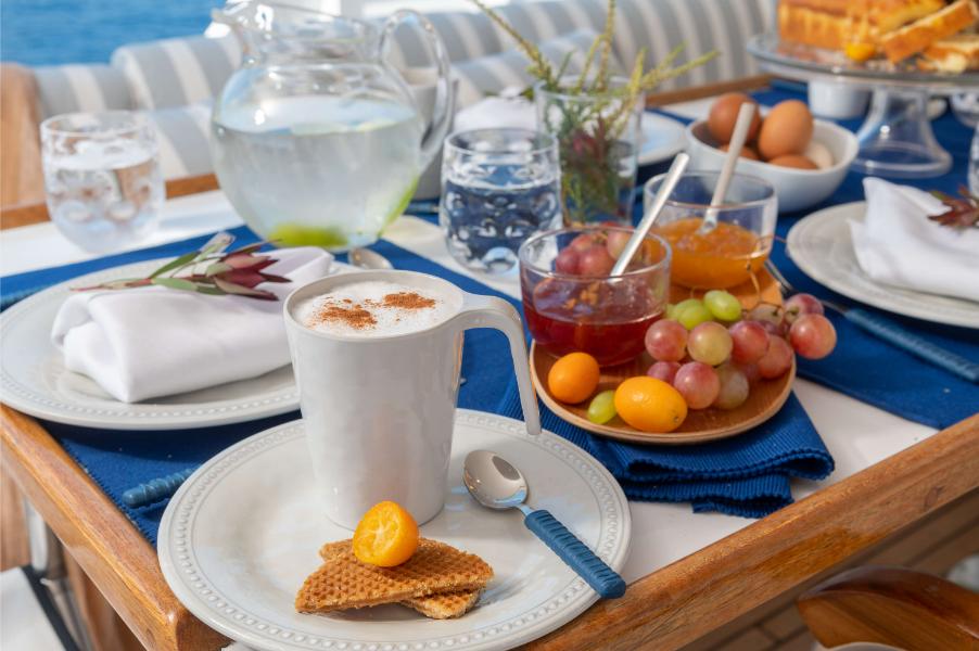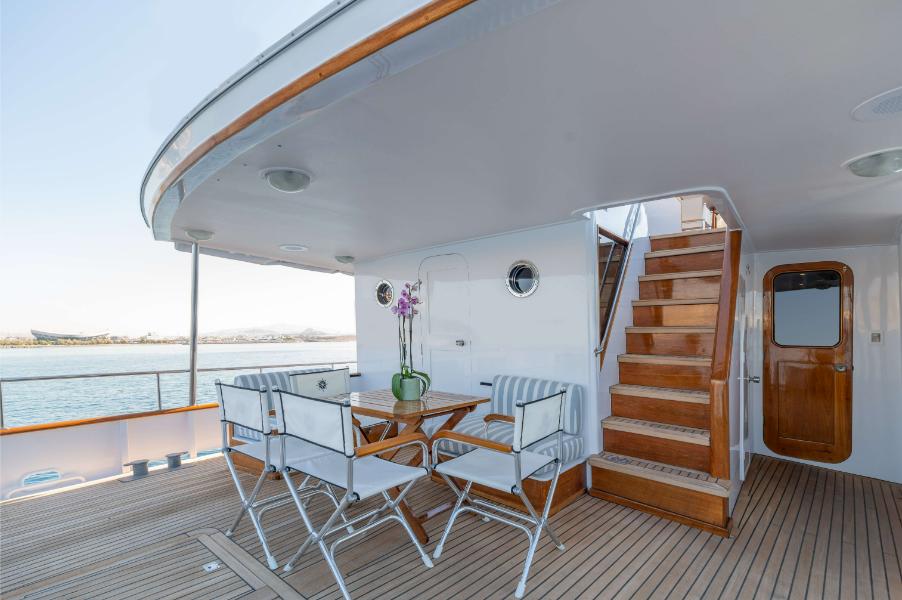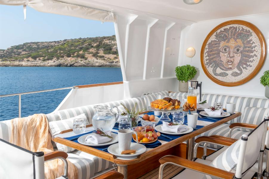 A dedicated crew of five professionals—including an outstanding captain, steward, and chef—work seamlessly together to deliver a truly first-class charter experience. Every detail of TAKA has been carefully designed, from her wide gangway and generous deck spaces to her inviting interior. Accessibility is also a hallmark: she is equipped with a removable stairlift from the main deck to the sun deck, making her welcoming for all guests, including children and those with reduced mobility.